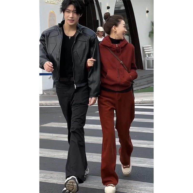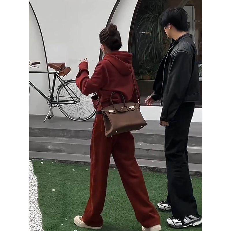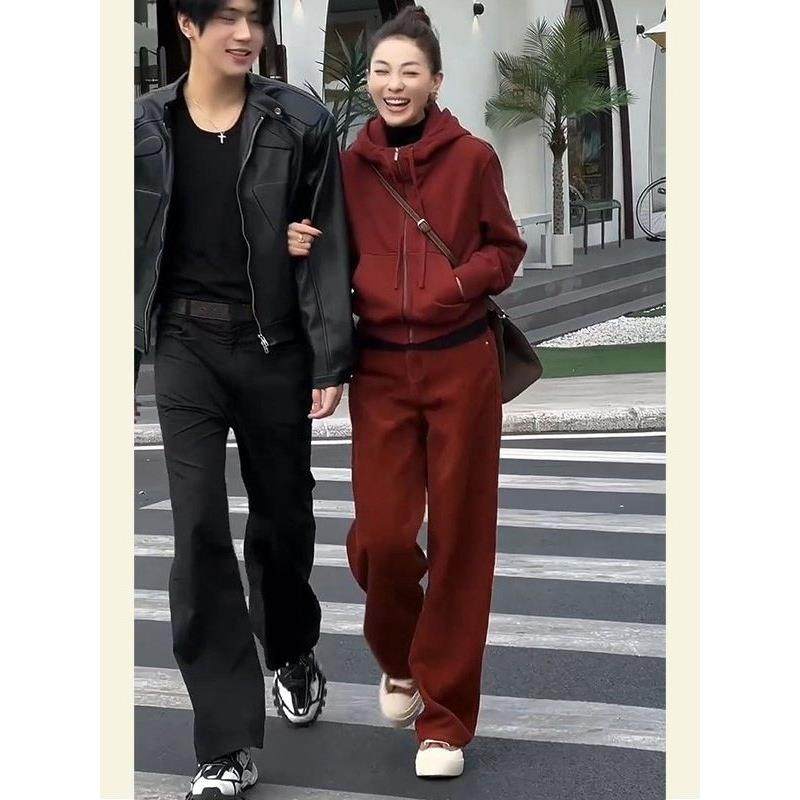 休闲运动套装女冬季新款高级感轻奢加绒加厚连帽卫衣阔腿裤两件套