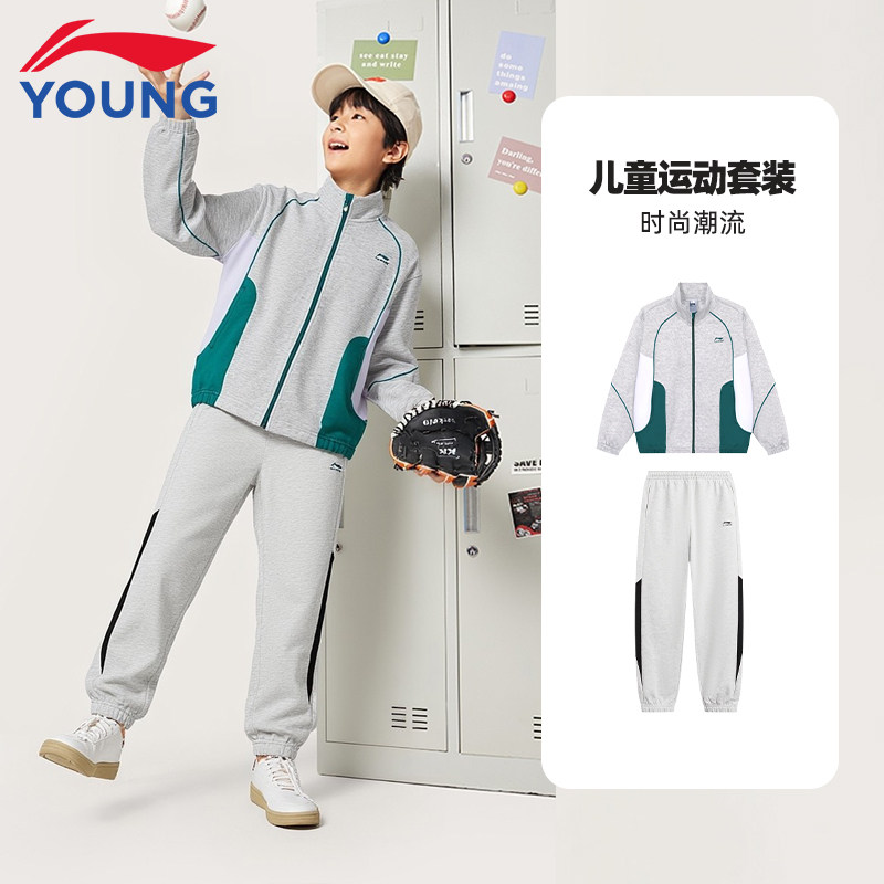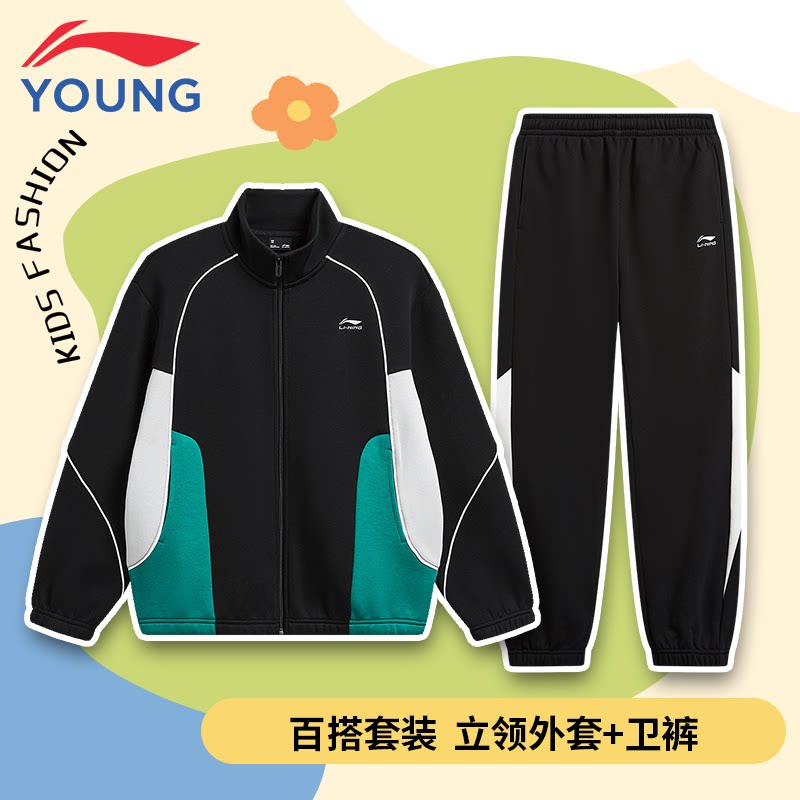 李宁童装男童运动套装2026新款帅气时髦儿童春装立领开衫外套裤子