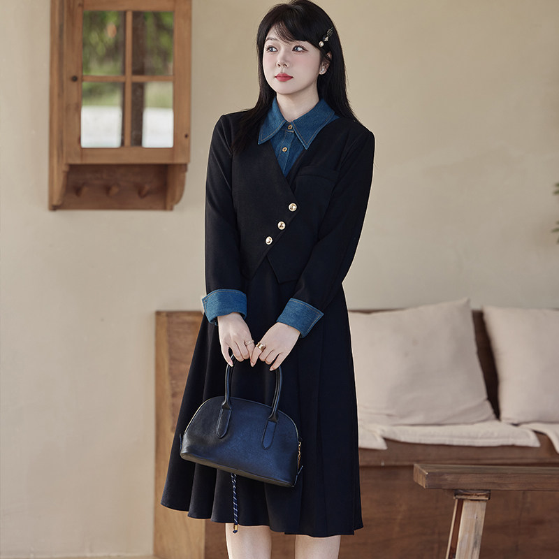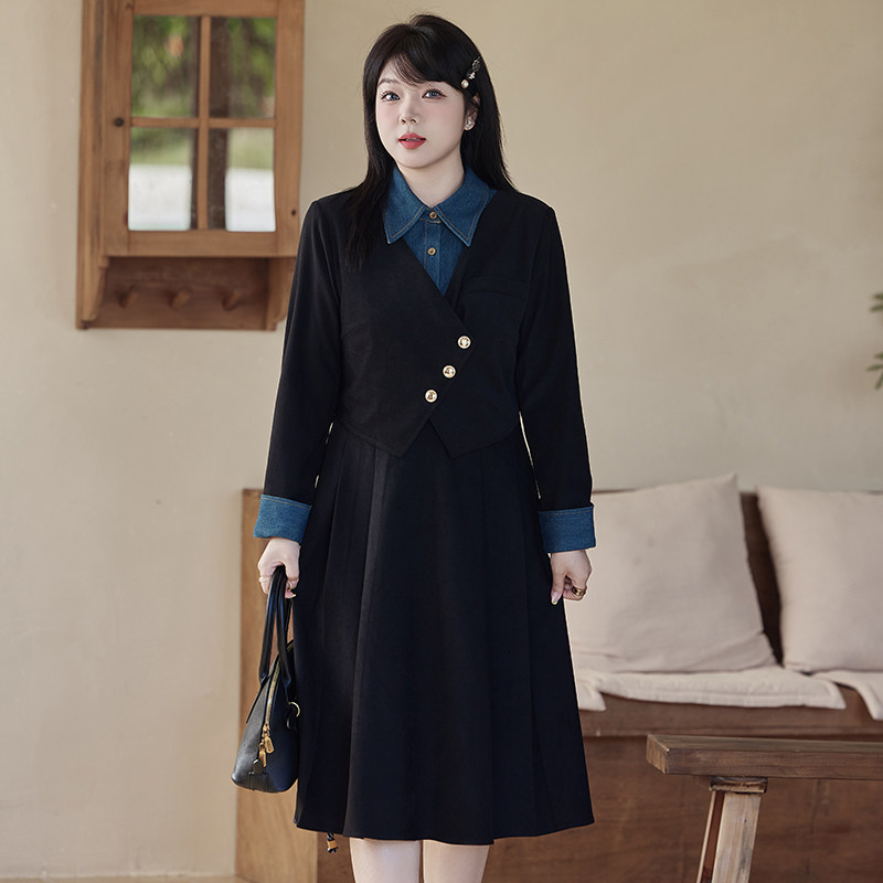 绮娑女装冬季新款polo领收腰A字法式长裙显瘦胖MM大码磨毛连衣裙