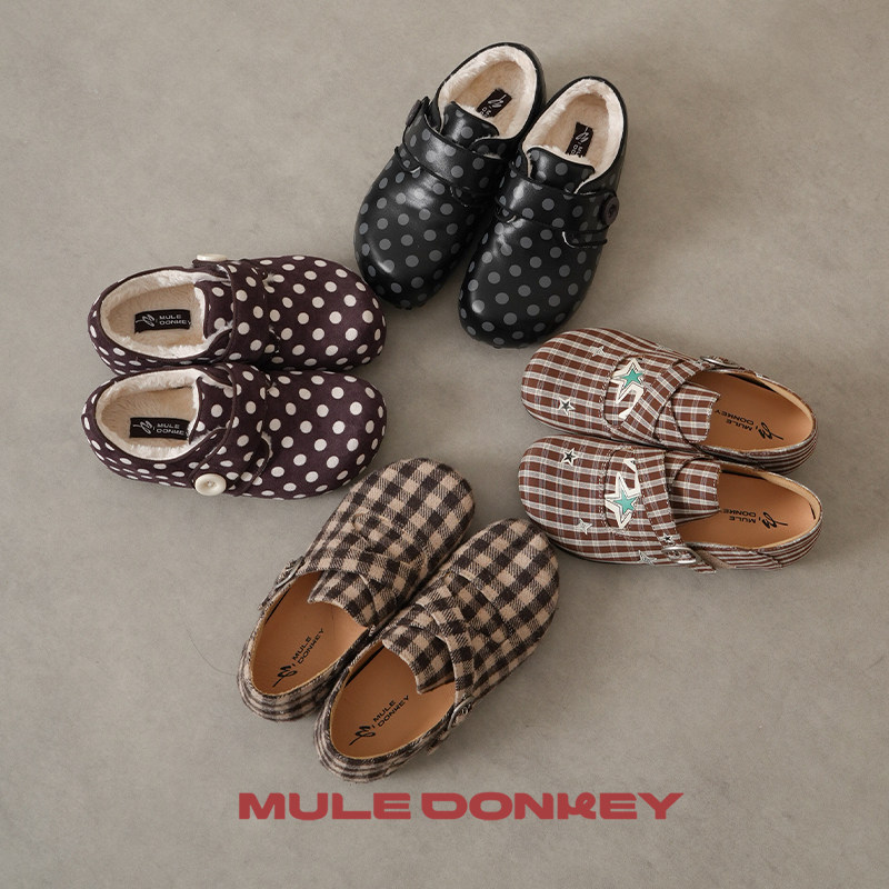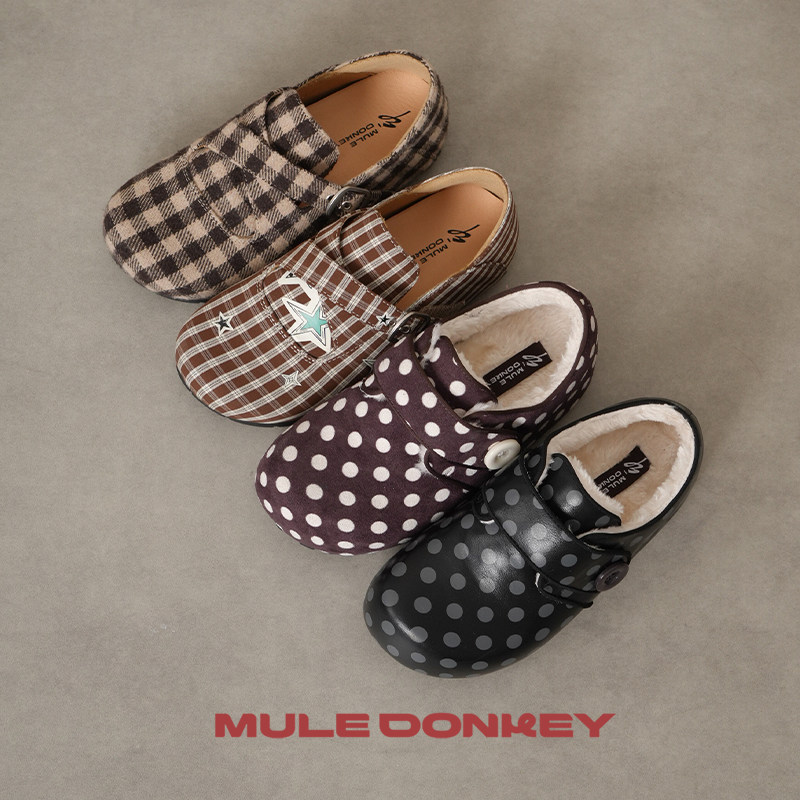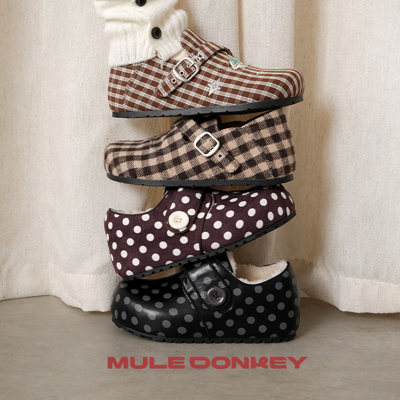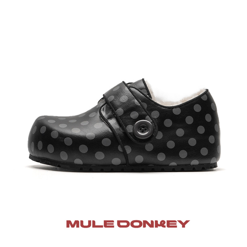 多嘴驴Donkey黑色波点加绒全包勃肯鞋女冬季保暖小众厚底增高棉鞋