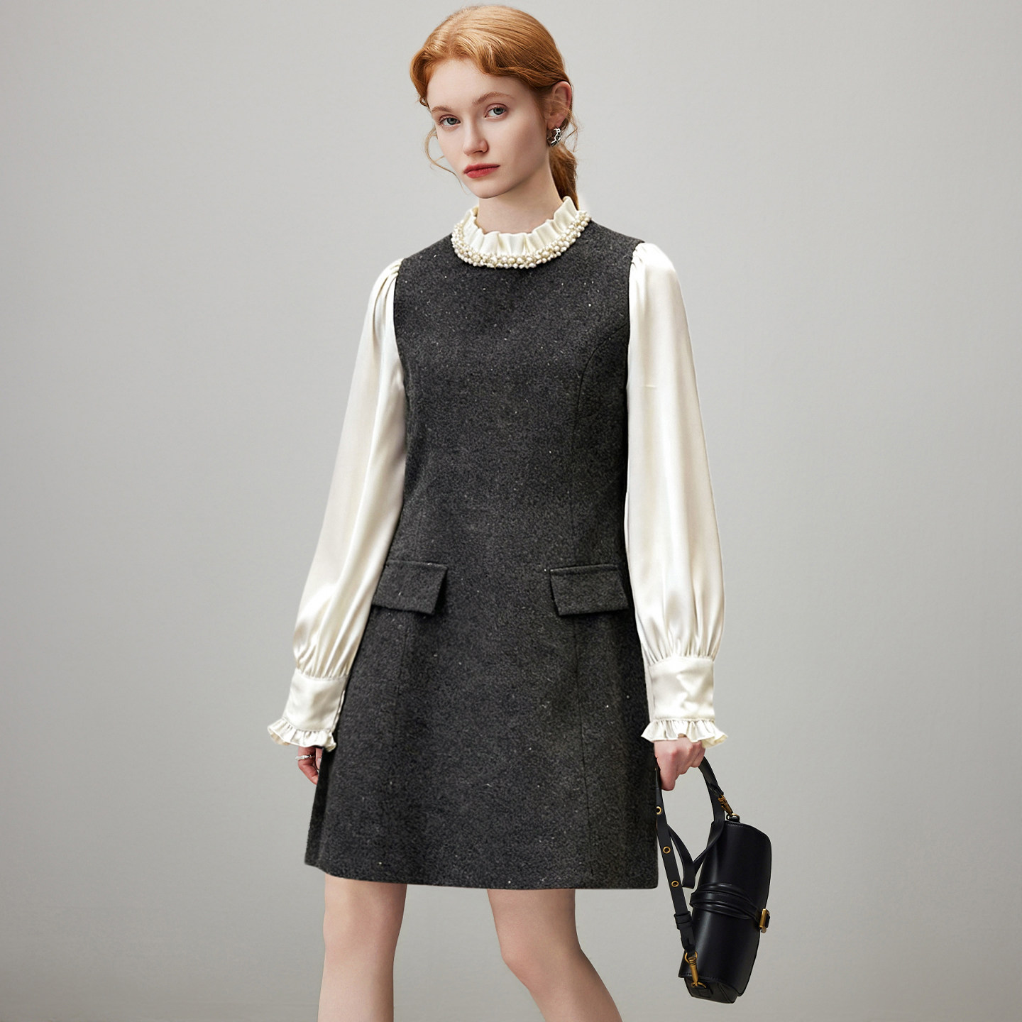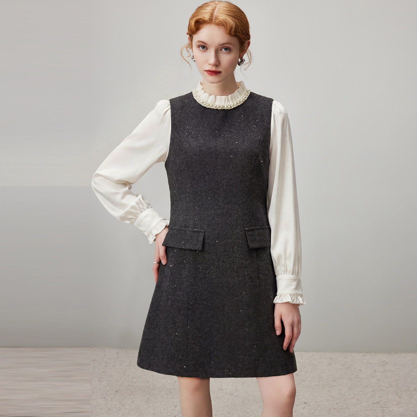 dfvc羊毛气质假两件冬装连衣裙女2025年冬季新款小个子裙子打底裙
