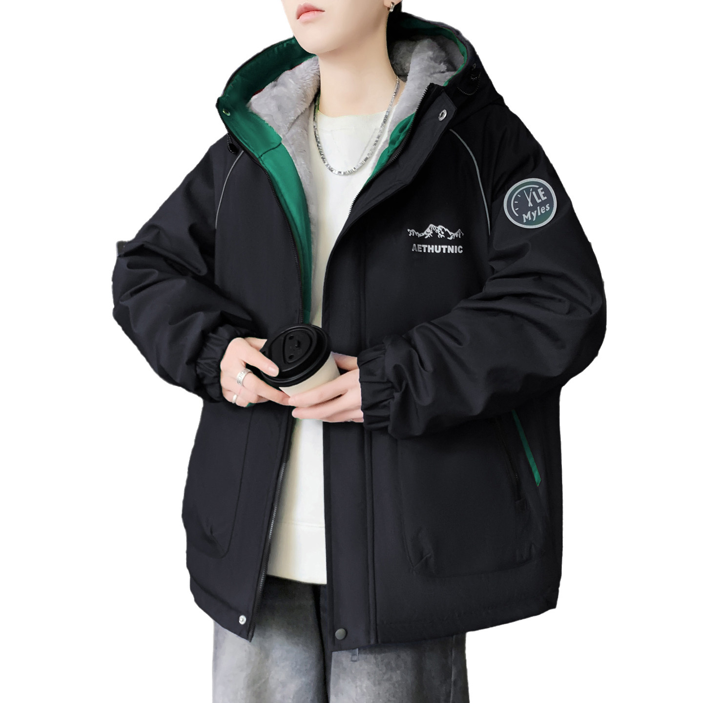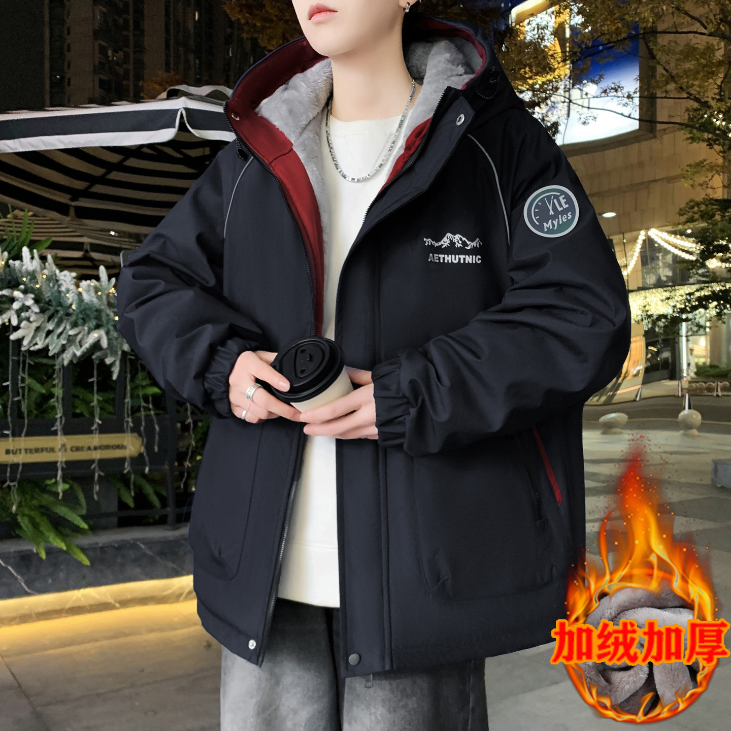 秋冬季新款外套男孩高中初中学生加绒加厚夹克青少年大童冬装棉服