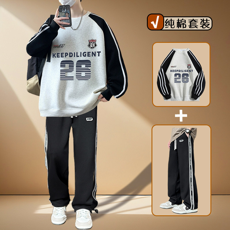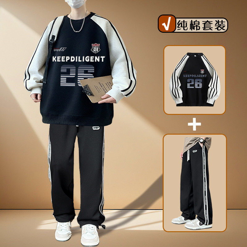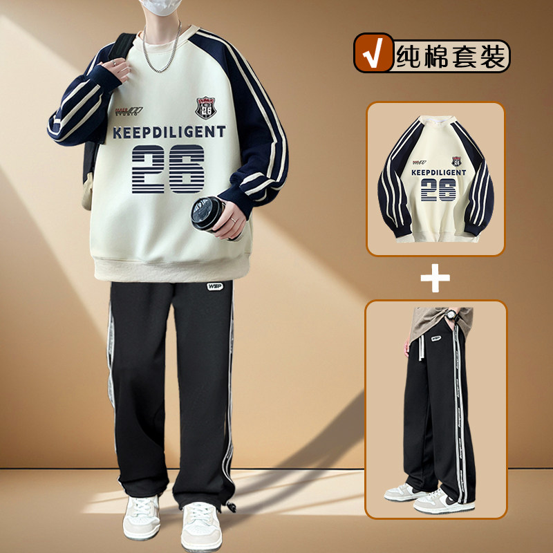 以青少年卫衣套装男装2026春秋季新款纯棉高中学生潮流帅气时髦純