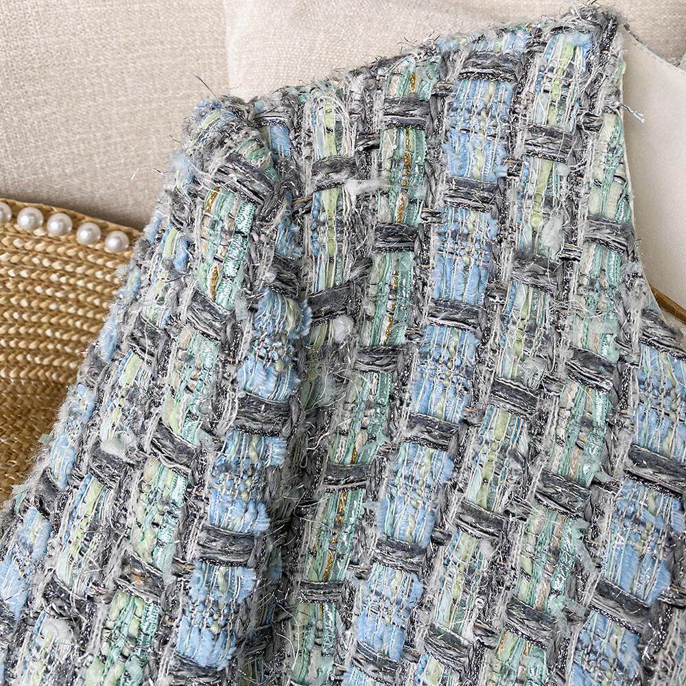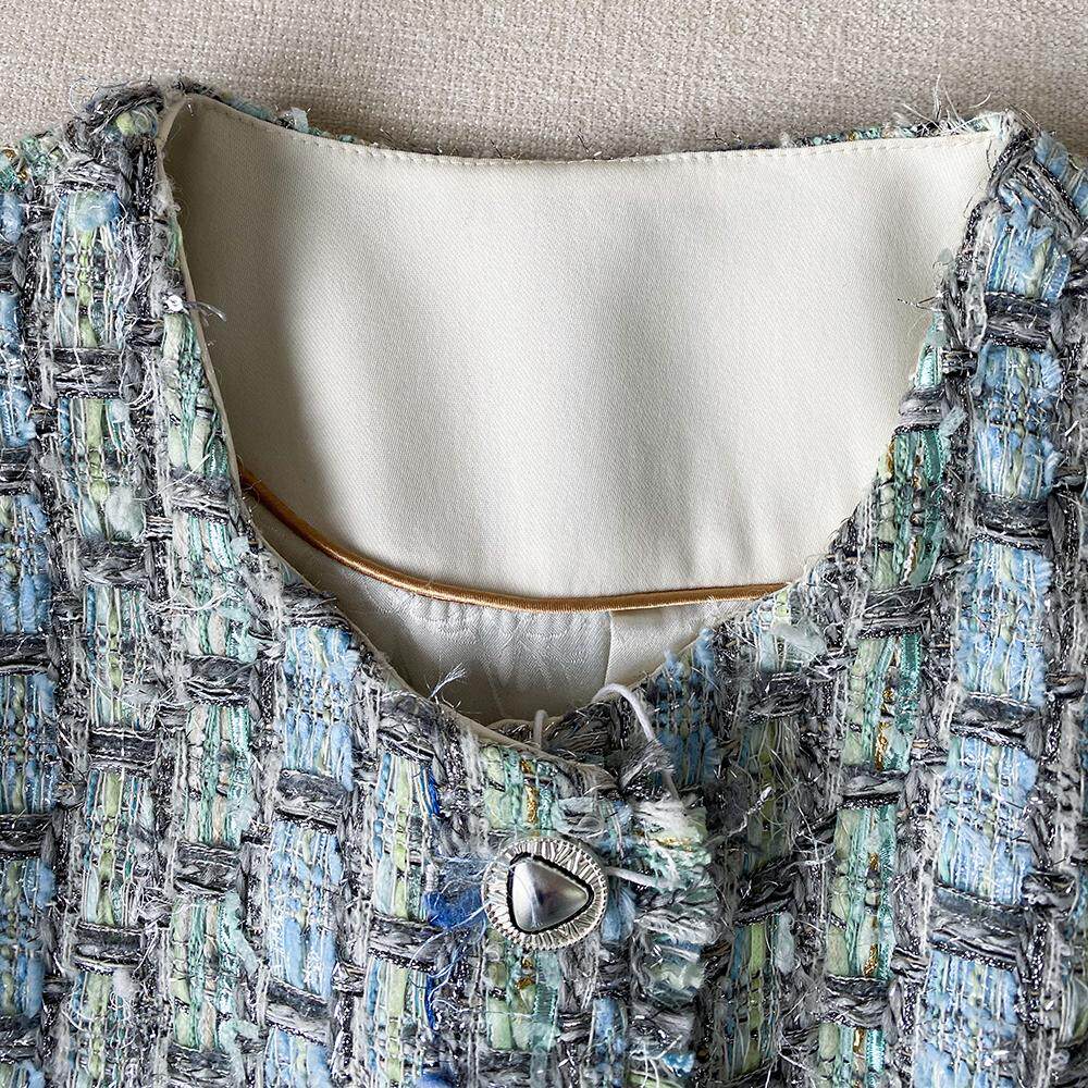 浅蓝色粗花呢单排扣小香风外套女装2024春秋新款高级感超好看上衣