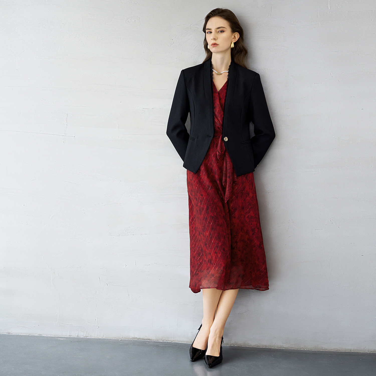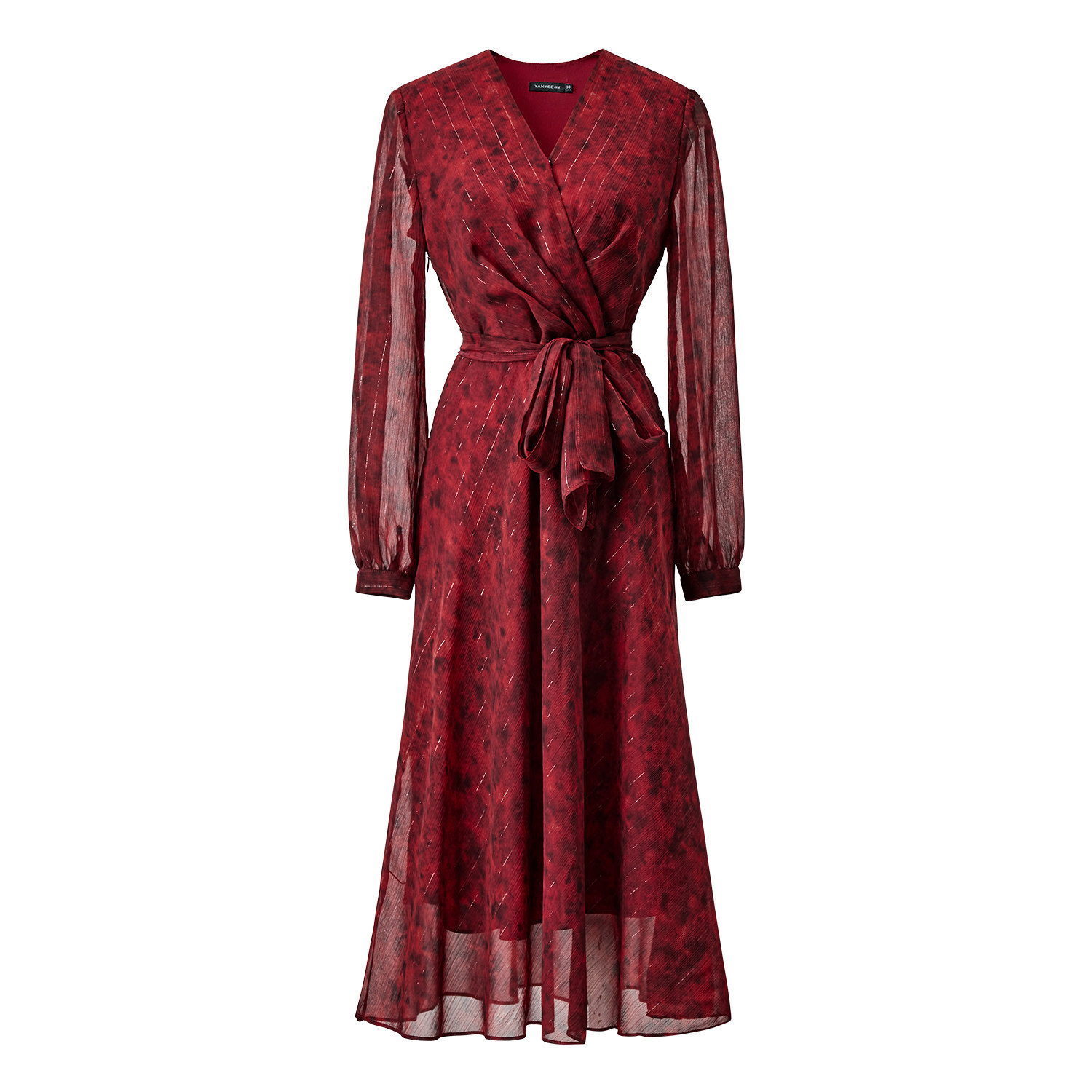 颜域红色碎花连衣裙女2026初春新款收腰系带年会绝美气质女士长裙