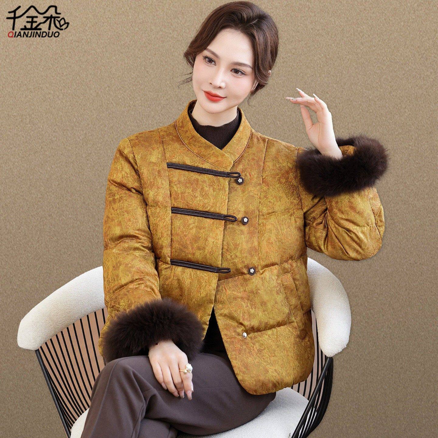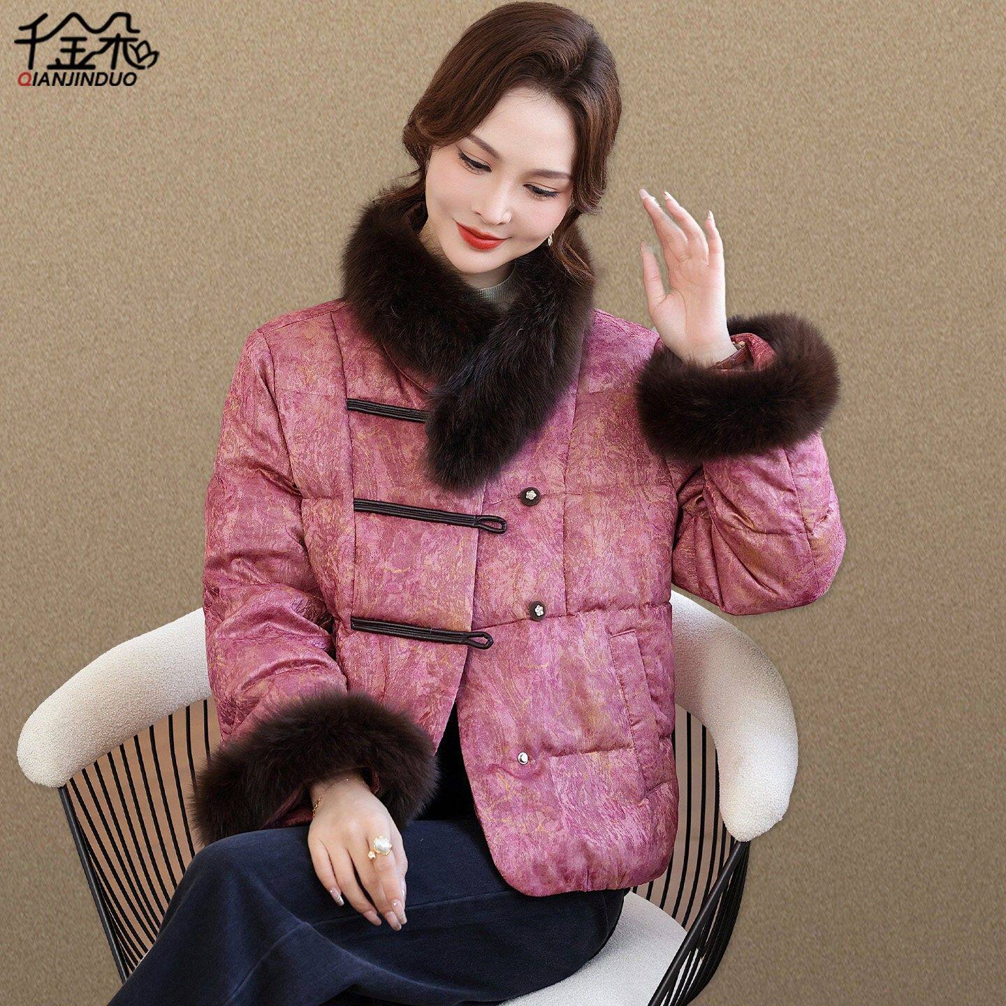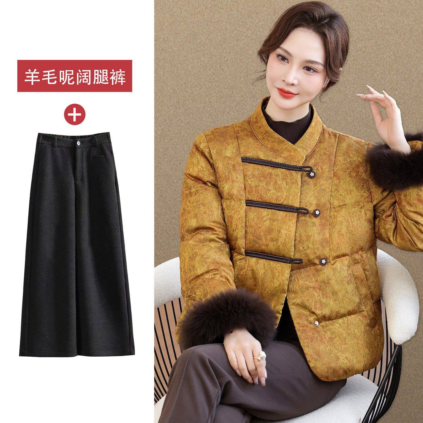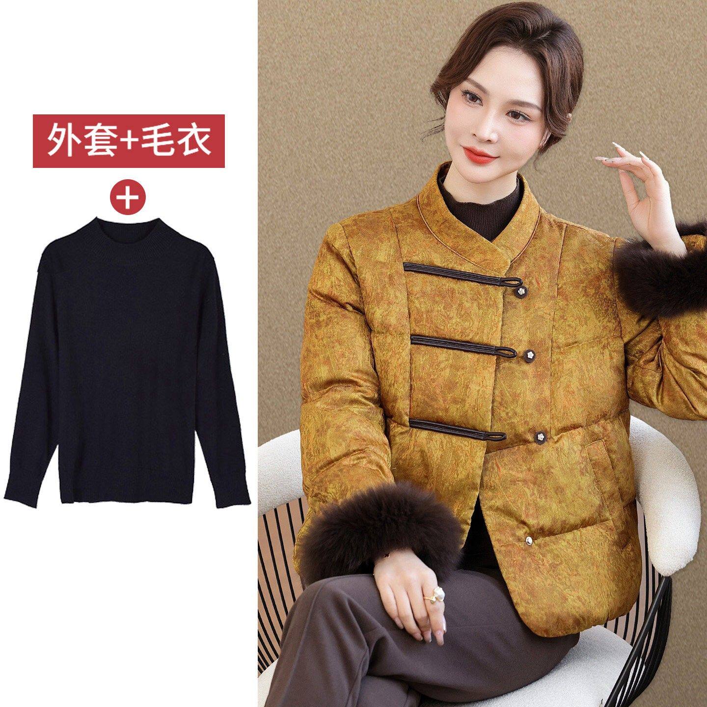 2026年新款鹅绒服国风中老年羽绒服女款洋气妈妈冬装狐狸毛领外套