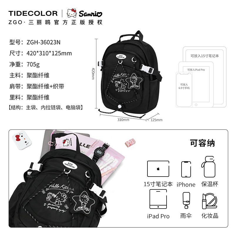 311线报网描述:三丽鸥正版联名 大容量初高中书包