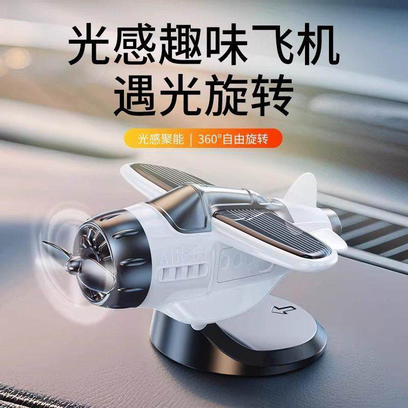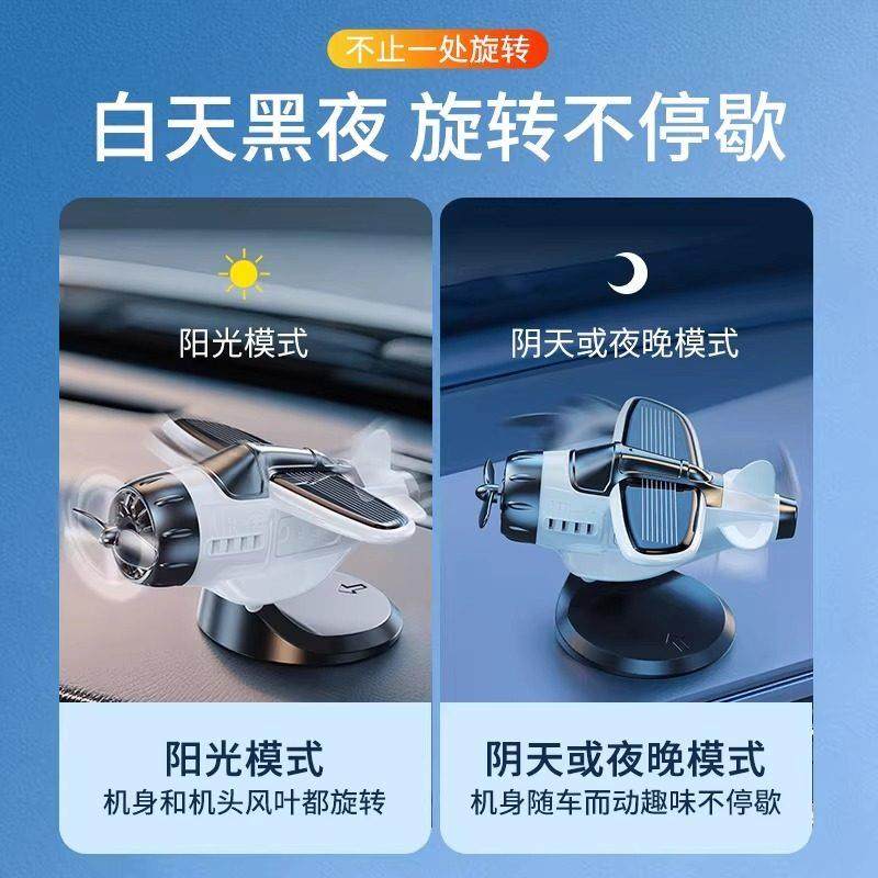 太阳能车载飞机摆件新款车载太阳能旋转飞机汽车创意摆件