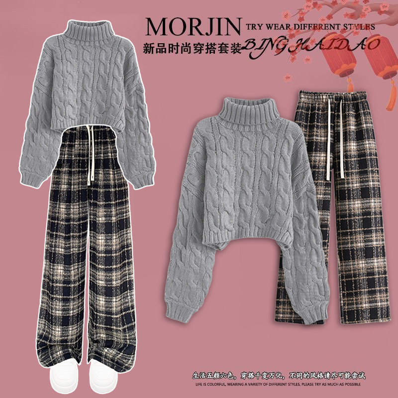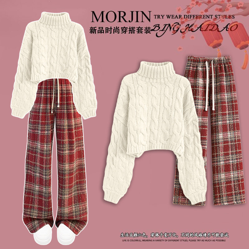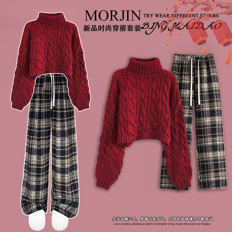 初中生女孩冬装毛线衣套装新年红针织衫中大童秋冬季新款儿童加厚