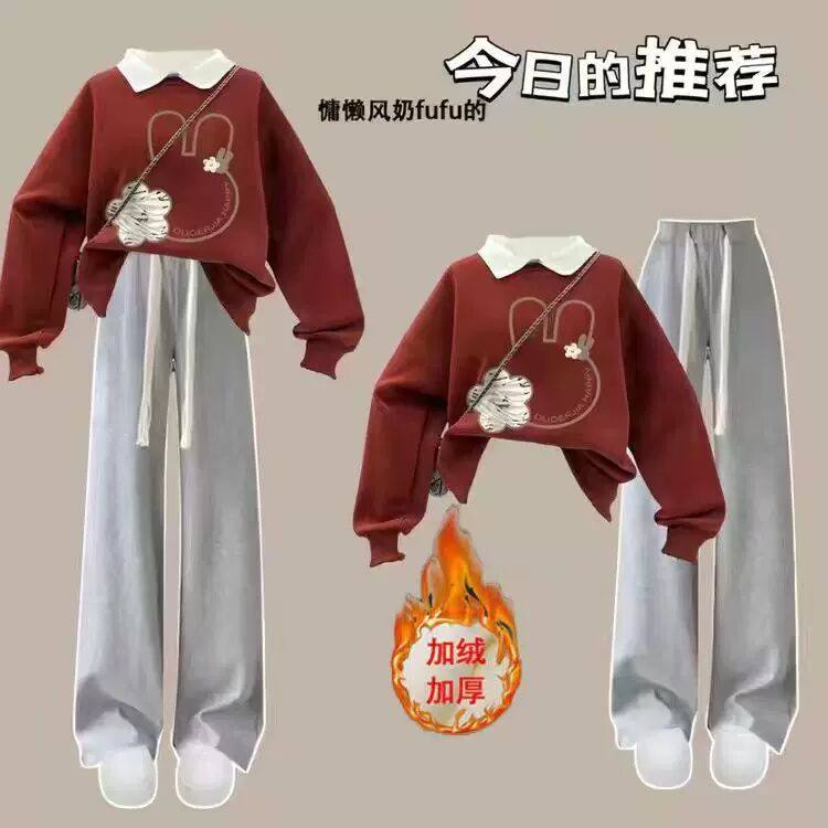 初中少女加绒加厚polo卫衣套装学生衣服搭配秋冬季女孩中大童冬装
