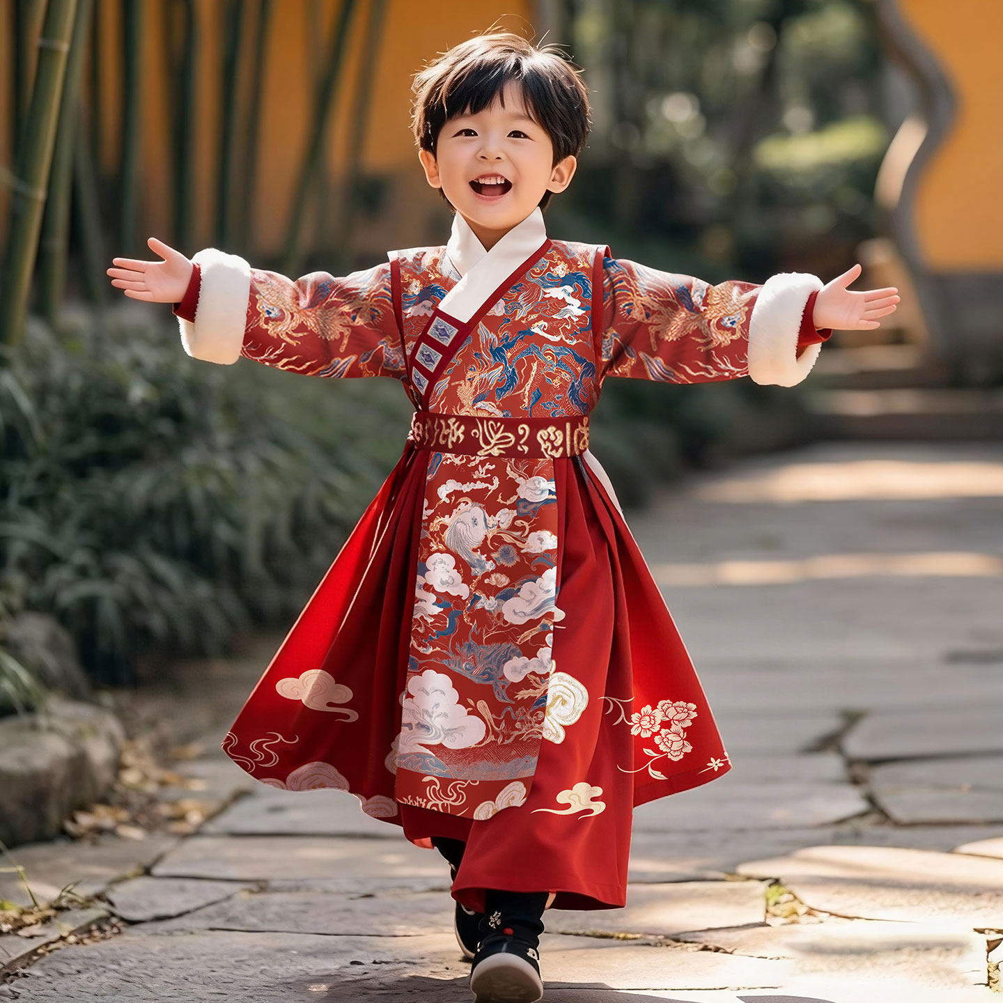 汉服男童冬装儿童古风唐装中国风拜年服古装小少爷古风新年过年服
