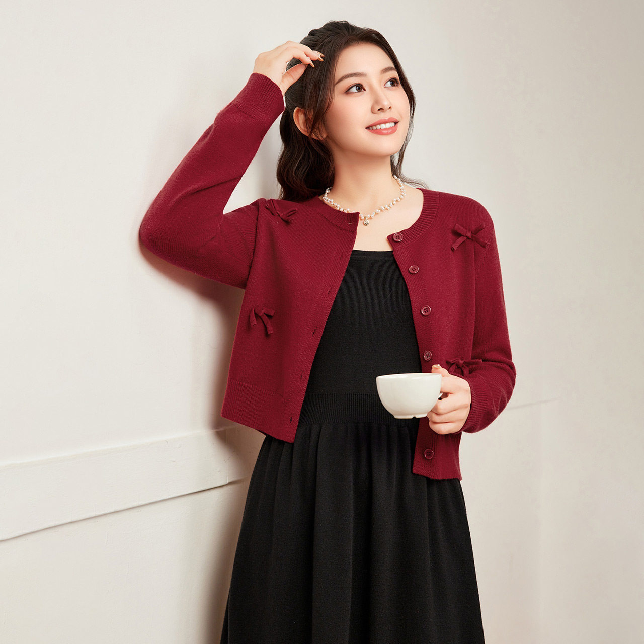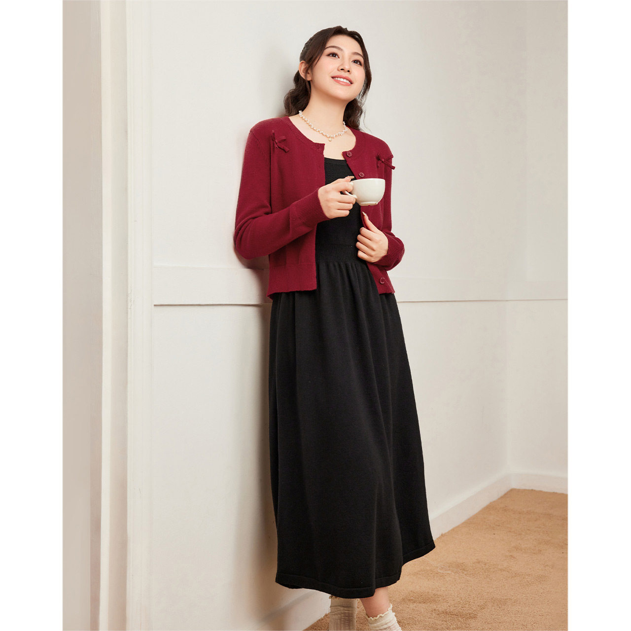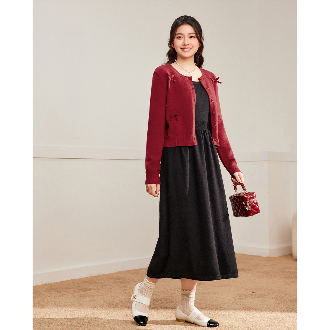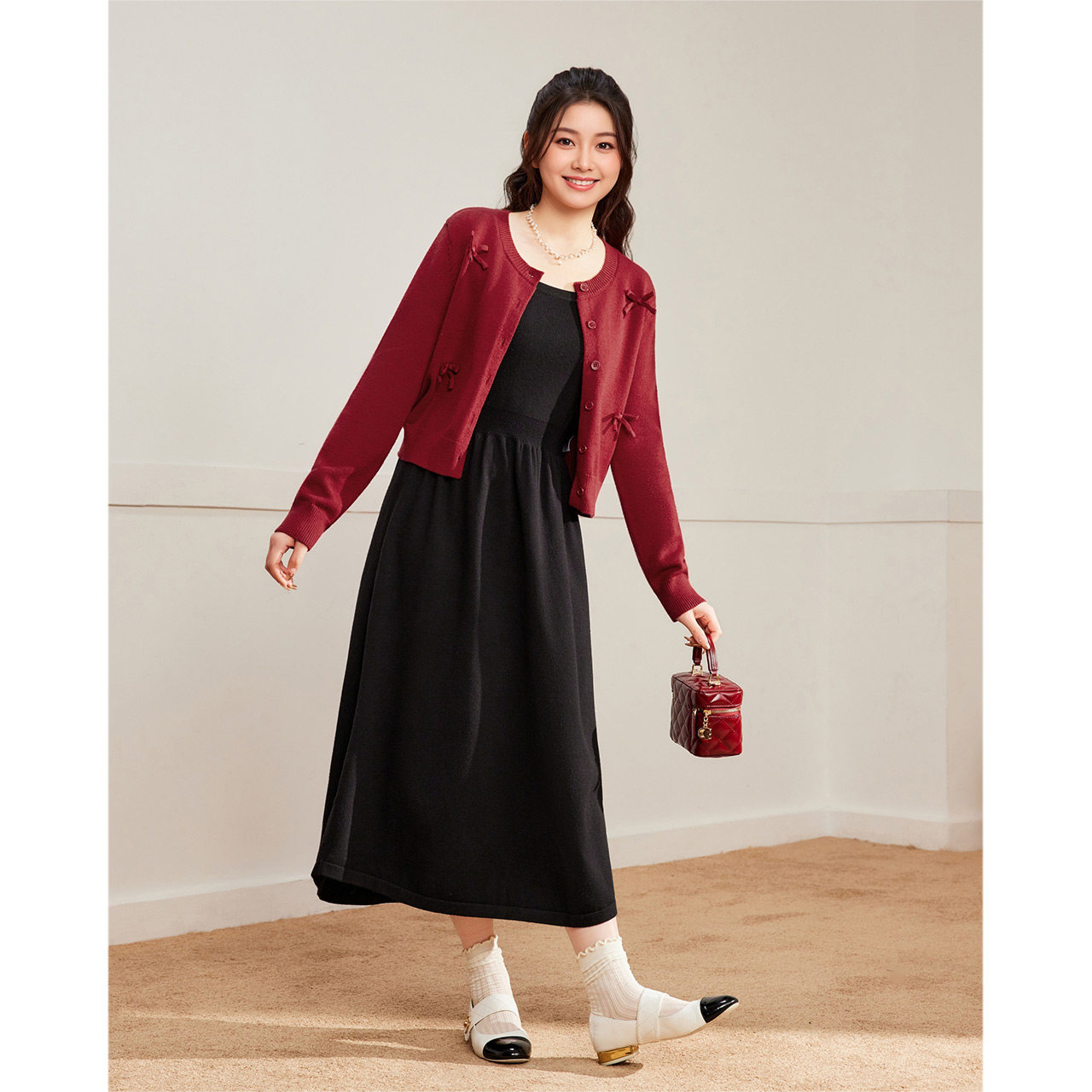 IEF/爱依服【微胖】套装2025秋冬新款大码女装红色开衫吊带两件套