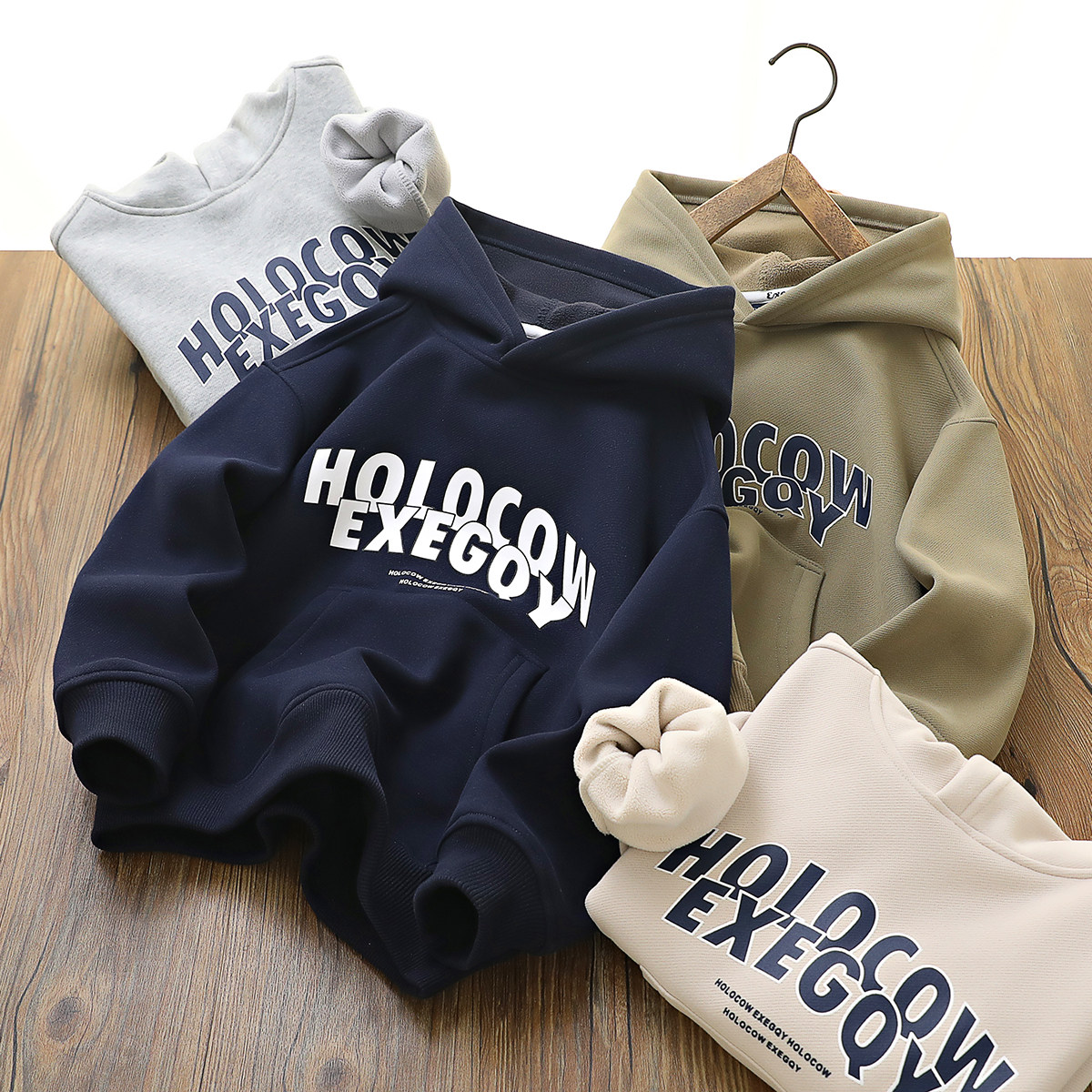 180青少年儿童加绒连帽卫衣 男女童一体绒保暖帽衫中大童冬款童装