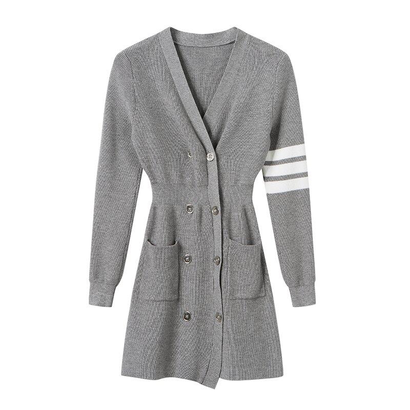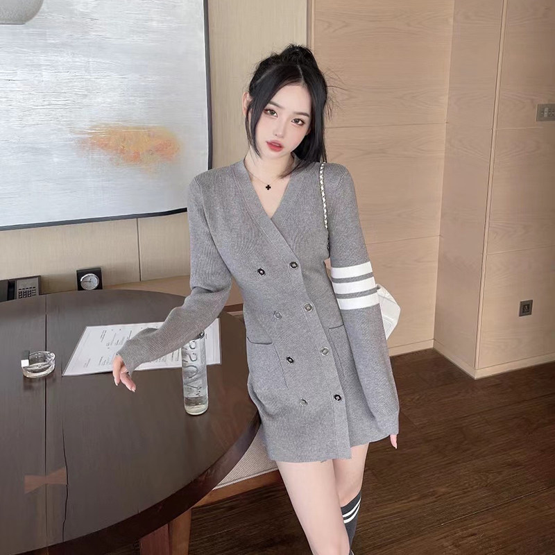 小个子v领修身毛衣打底包臀短裙子秋冬长袖收腰小香风针织连衣裙