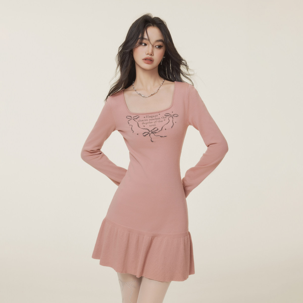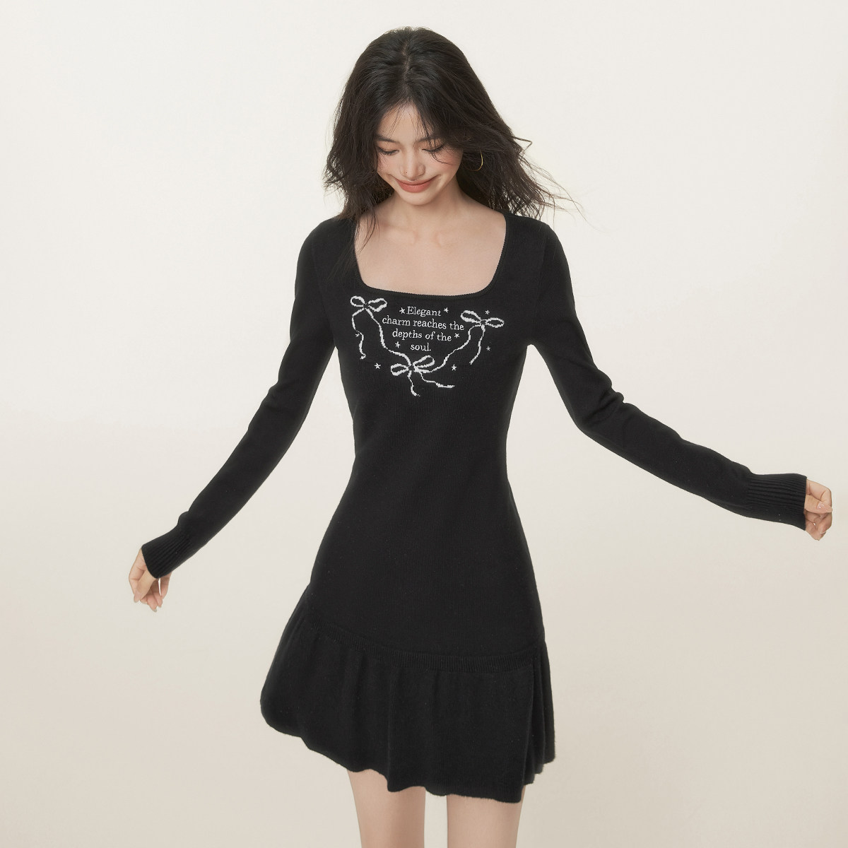 311线报网描述:撞色蝴蝶结字母提花图案 荷叶边裙摆设计