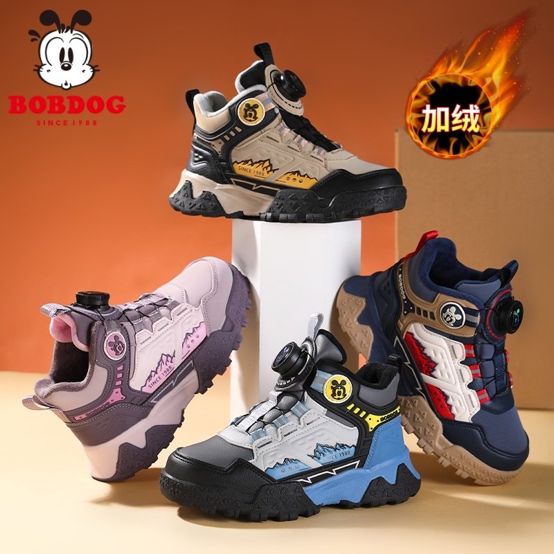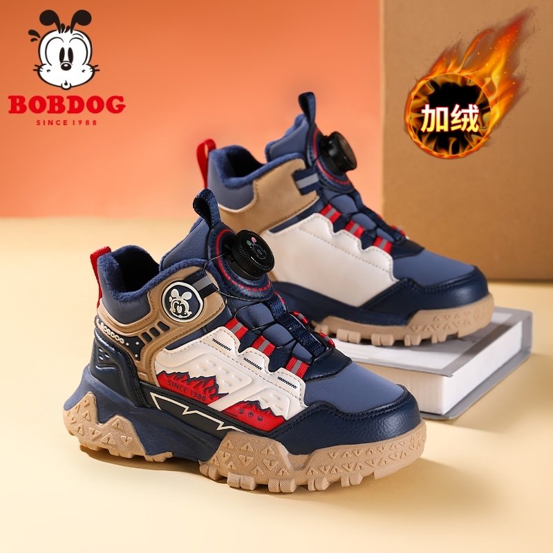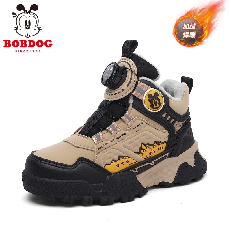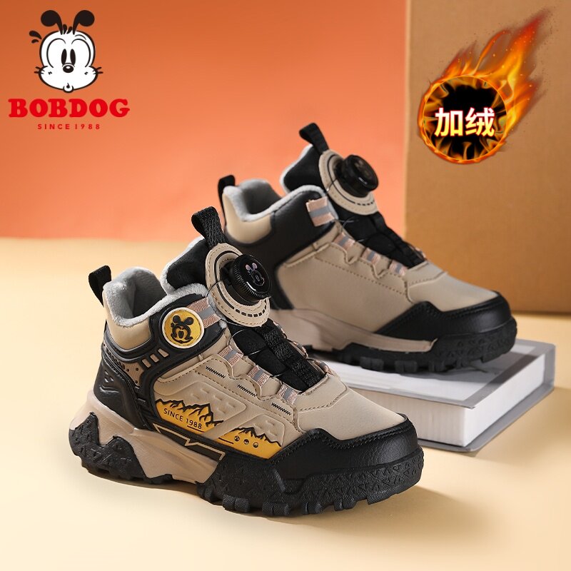 巴布豆男童棉鞋冬季皮面加绒二棉鞋子儿童运动鞋中大童保暖雪地靴