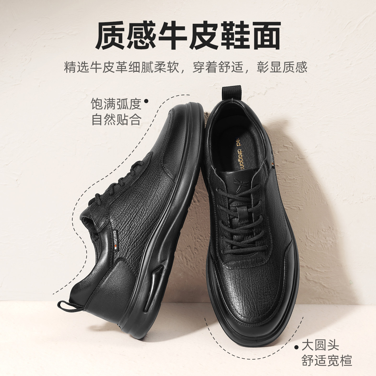 红蜻蜓休闲皮鞋25冬季新款男鞋商务真皮运动板鞋加绒中年爸爸鞋子