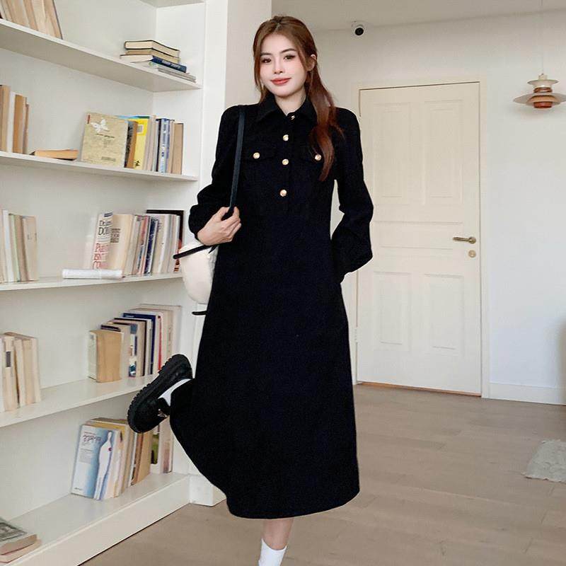 赫本风法式长袖连衣裙子女2025新款秋冬季小个子高级感配大衣内搭