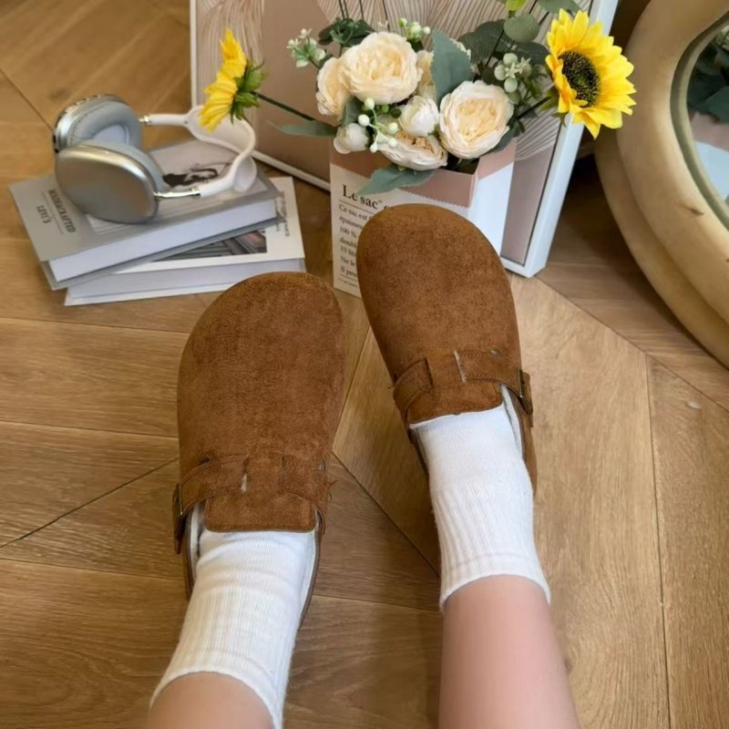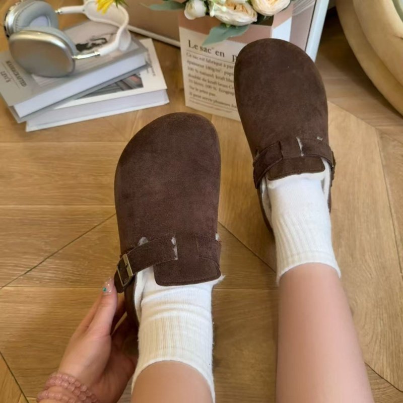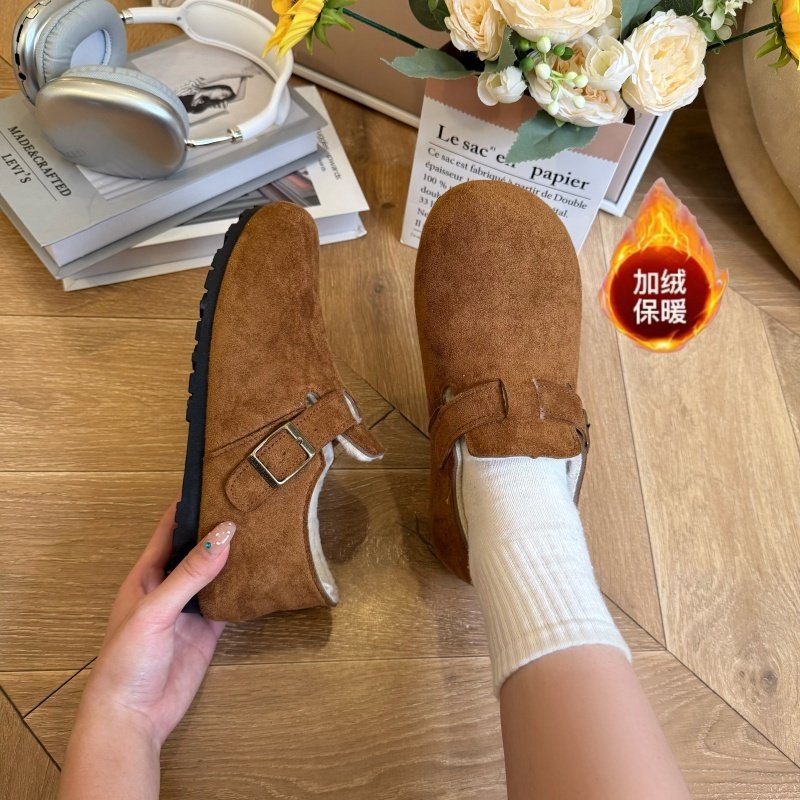 冬季加绒勃肯鞋厚底增高新款全包一脚蹬防滑软底不累脚懒人鞋外穿