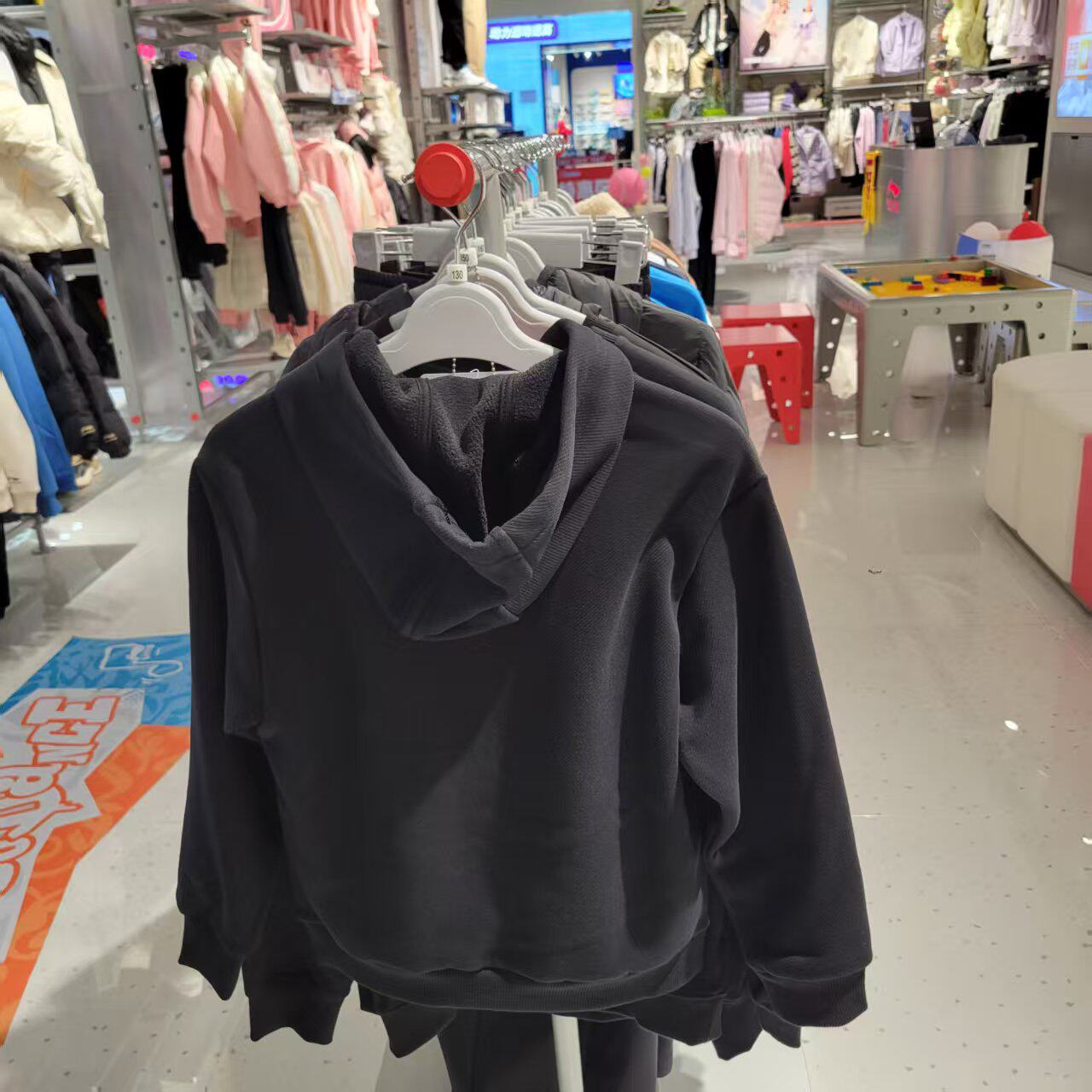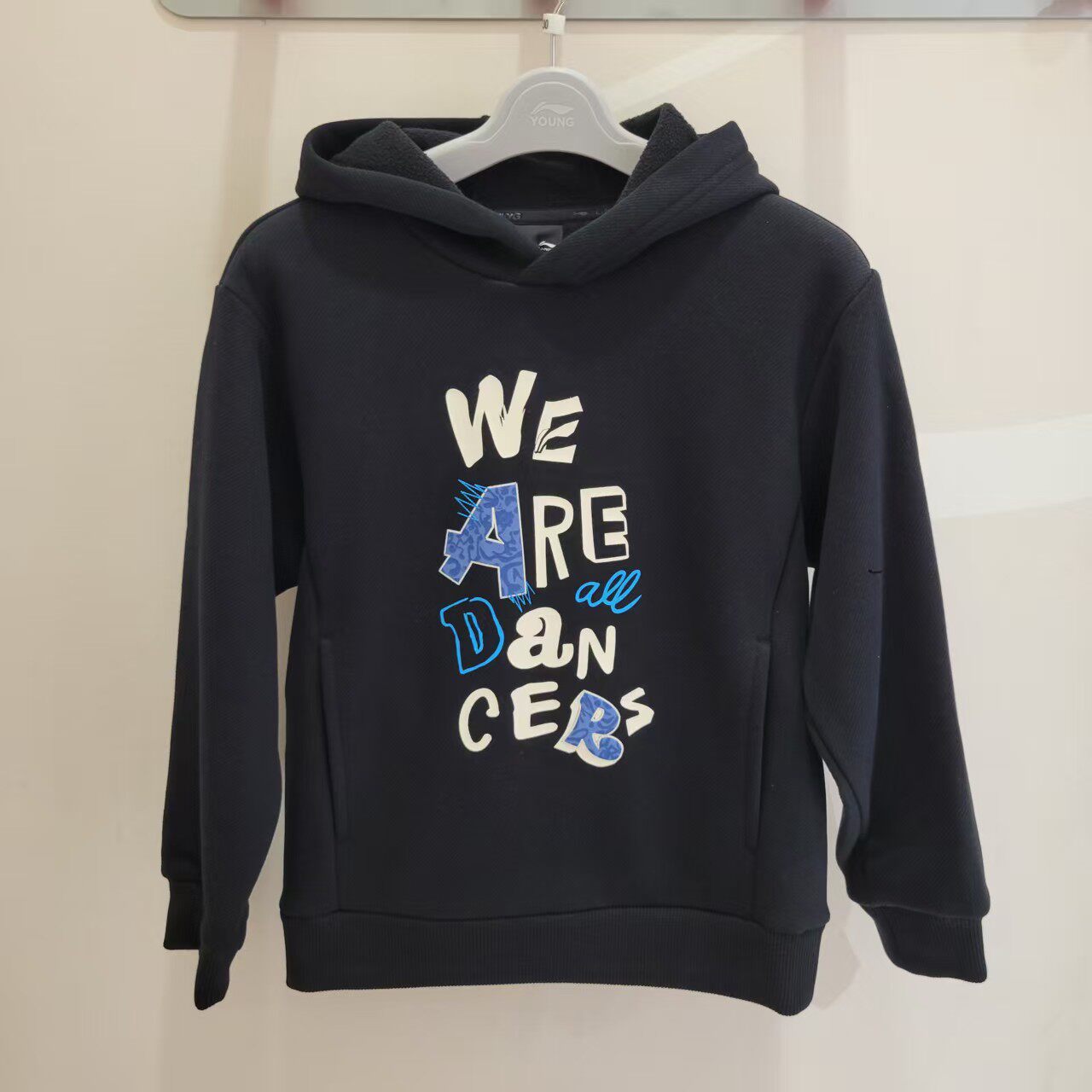 李宁童装男童连帽卫衣男大童字母印花加绒加厚套头外套黑色宽松