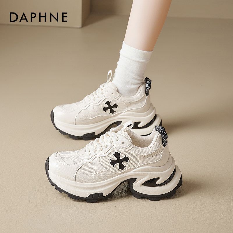 达芙妮白色老爹鞋女小个子增高2025新款配阔腿裤的复古厚底运动鞋