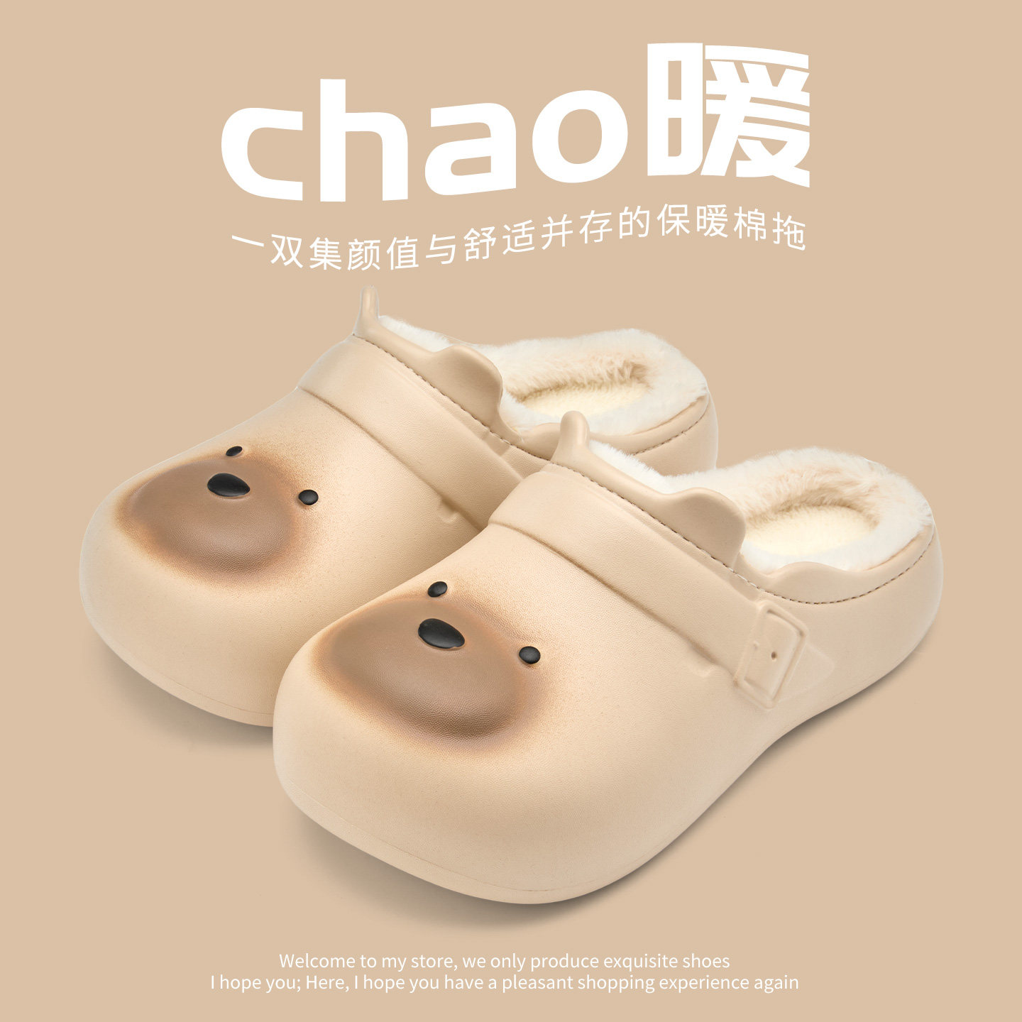 防水棉拖鞋女款2026新款室内家居防滑防臭保暖毛绒情侣棉鞋男冬季