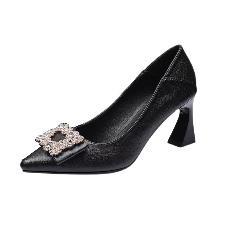 正品单鞋女中跟2025春秋季新款粗跟高跟鞋真软皮黑色工作职业女鞋