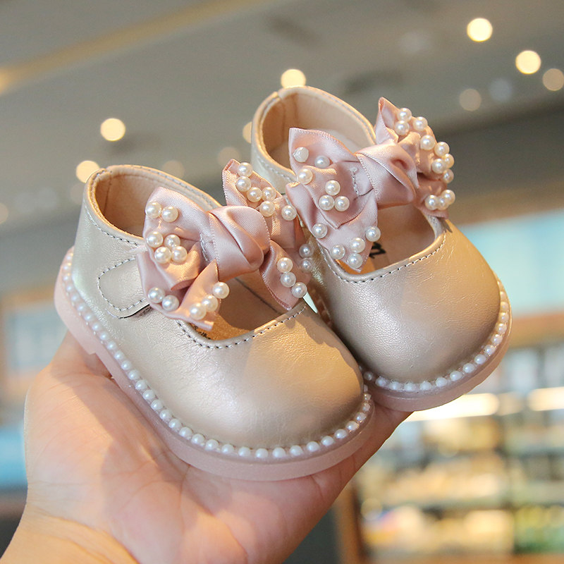 春秋蝴蝶结韩版透气单鞋珍珠公主鞋0-1-3岁婴幼儿女宝方口学步鞋2