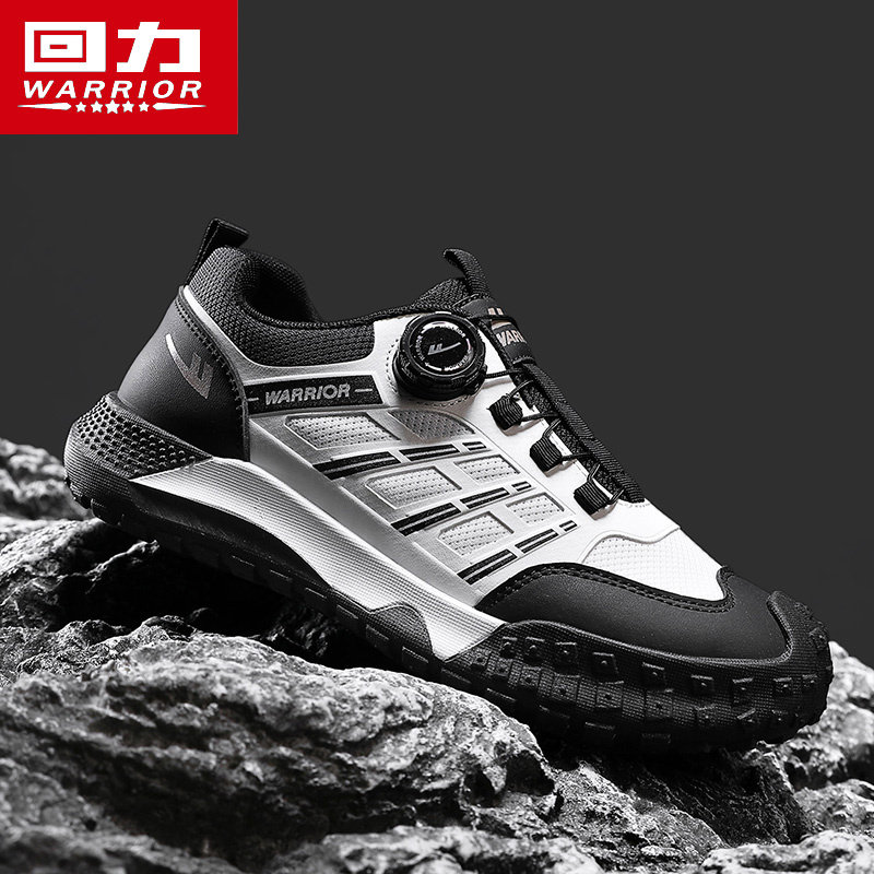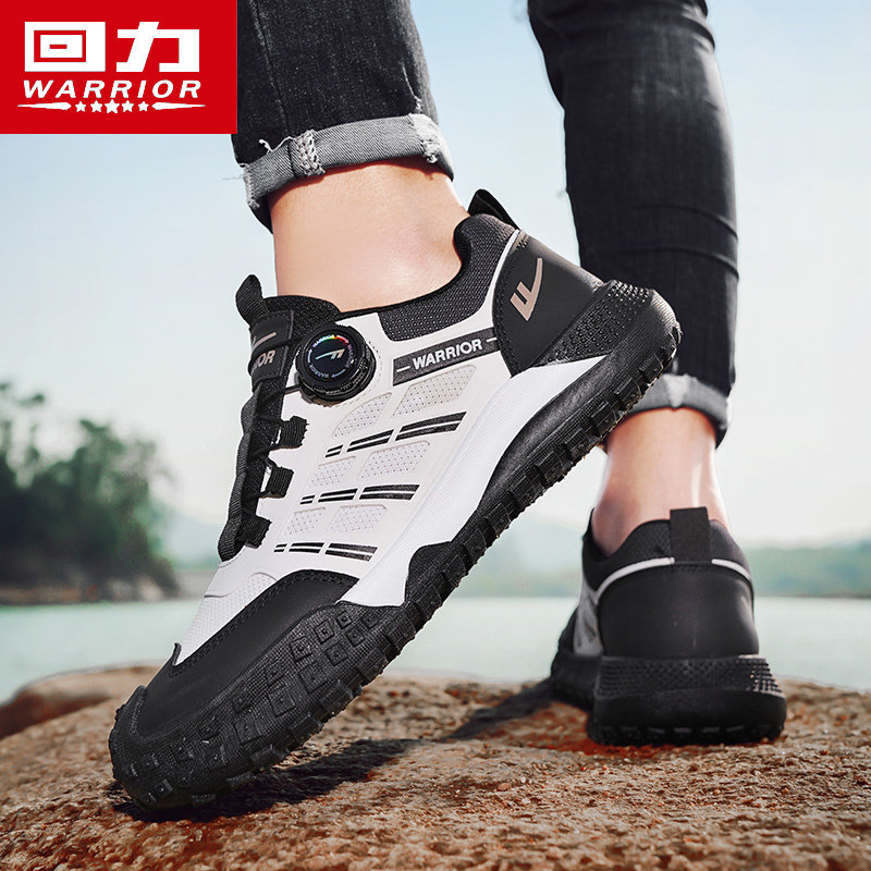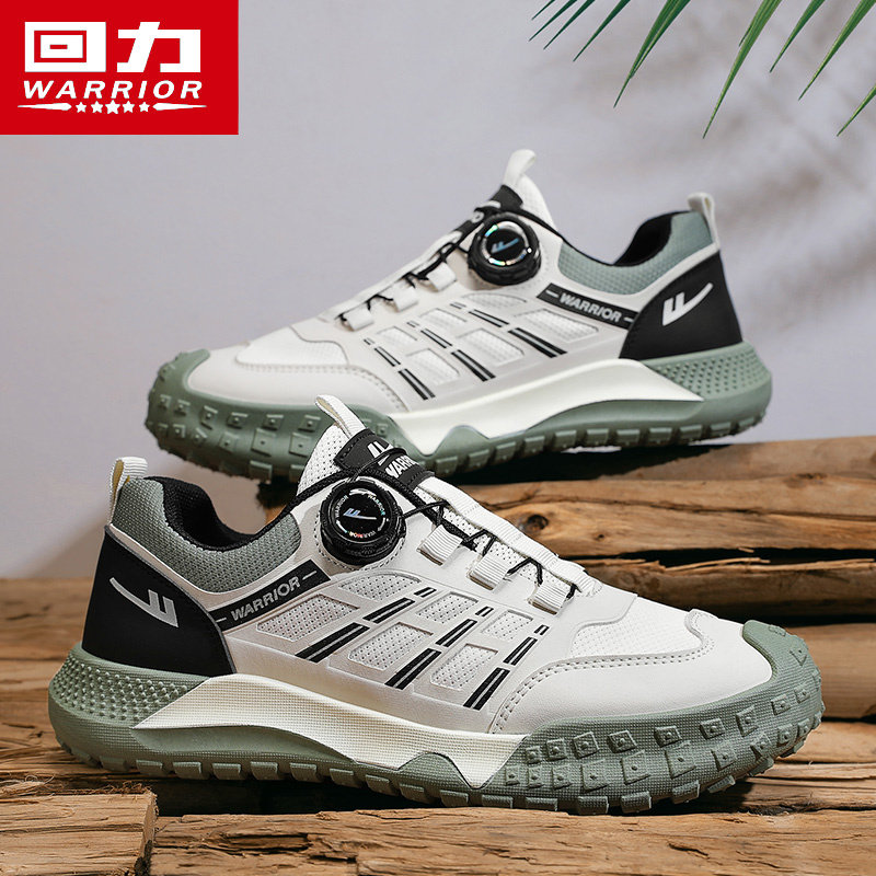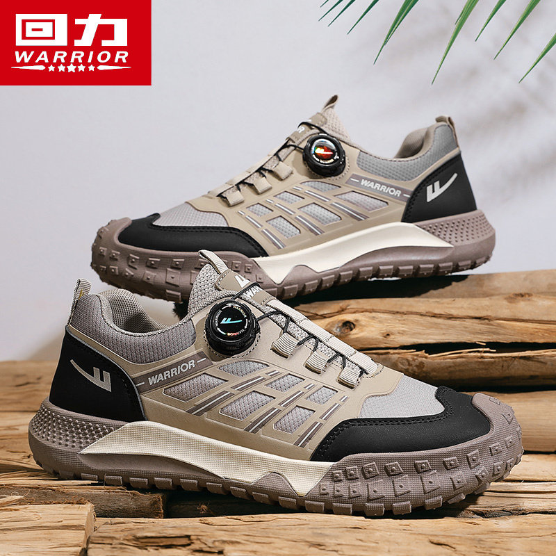 回力正品男鞋旋转钮扣免系带户外徒步登山运动休闲鞋皮面防水