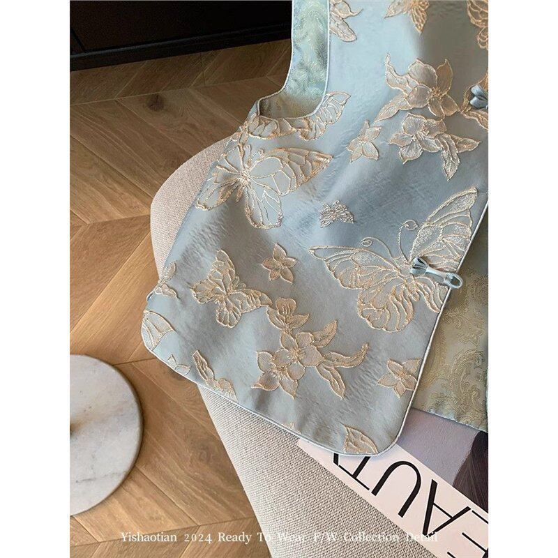 2026春款国风马甲新中式蓝色蝴蝶刺绣女装高端气质新款无袖背心