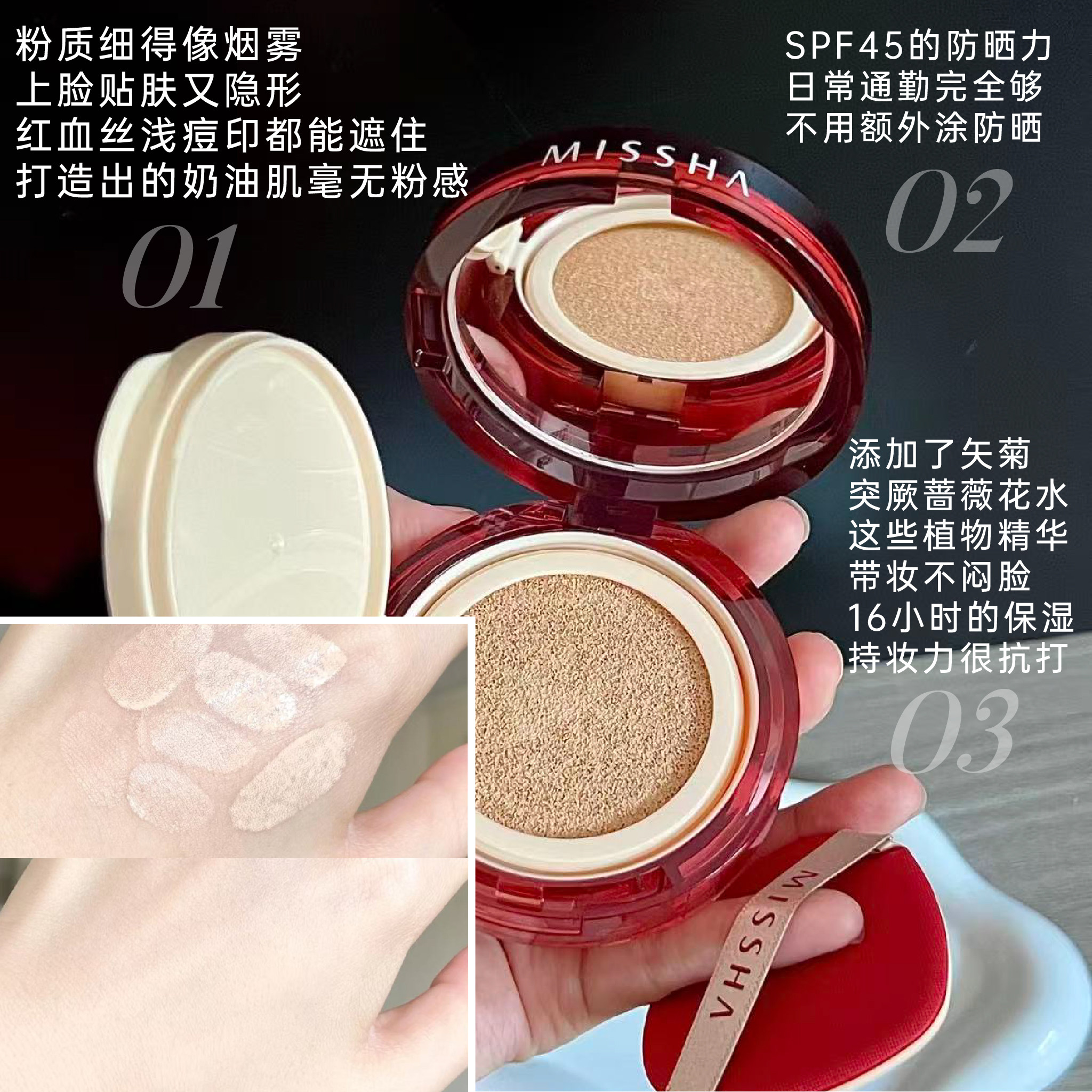 Missha/谜尚气垫小样官方正品持久遮瑕干/油皮水润无瑕粉底液化妆