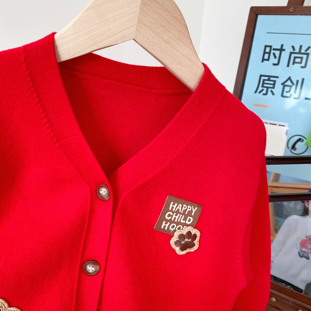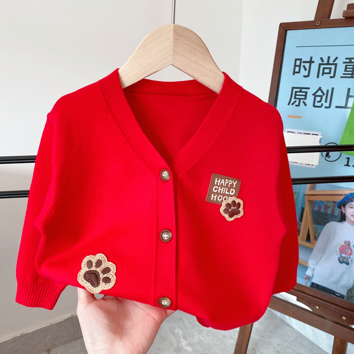 小童开衫毛衣儿童红色毛线衣童装春秋季新款婴儿棉线针织衫男童女