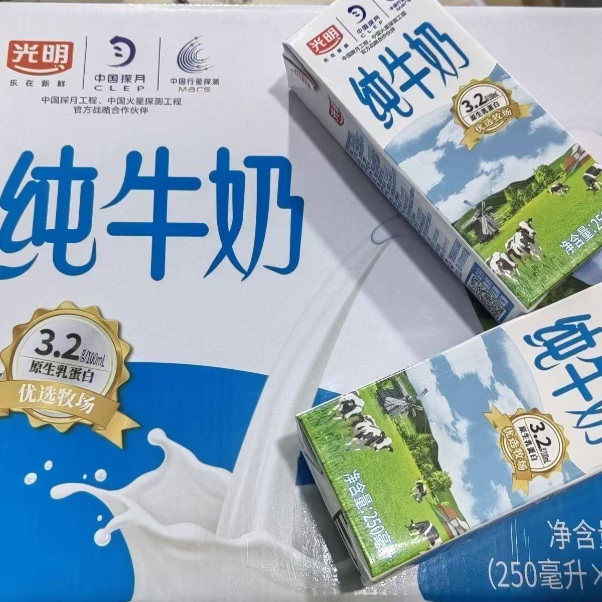 8月25产光明优加纯牛奶苗条装纯牛乳营养早餐奶250ml*12盒
