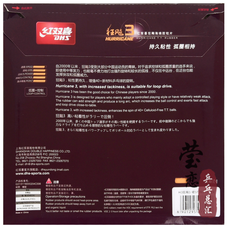莹恋 红双喜NEO狂飙3狂飚3省套国套37度柔乒乓球胶皮球拍反胶套胶
