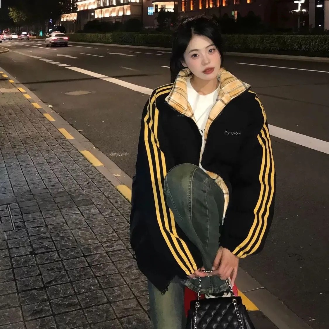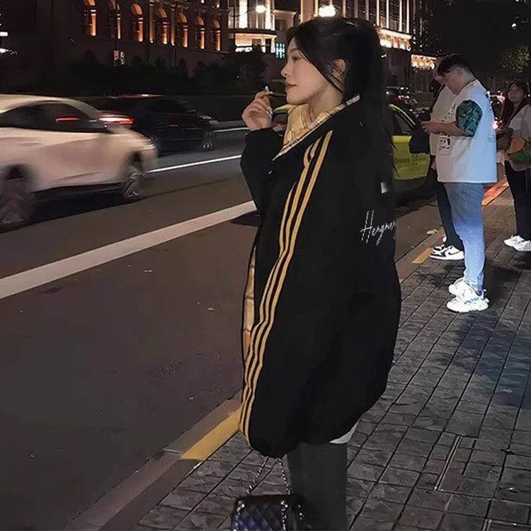 学院风拼接撞色三条杠羽绒棉服少女大童冬季初中高中学生加厚外套