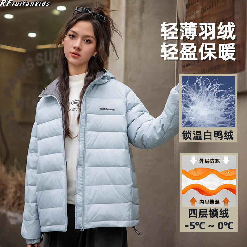 女大童轻薄羽绒服2025冬季初中生连帽保暖内胆外套冬装白鸭绒外套