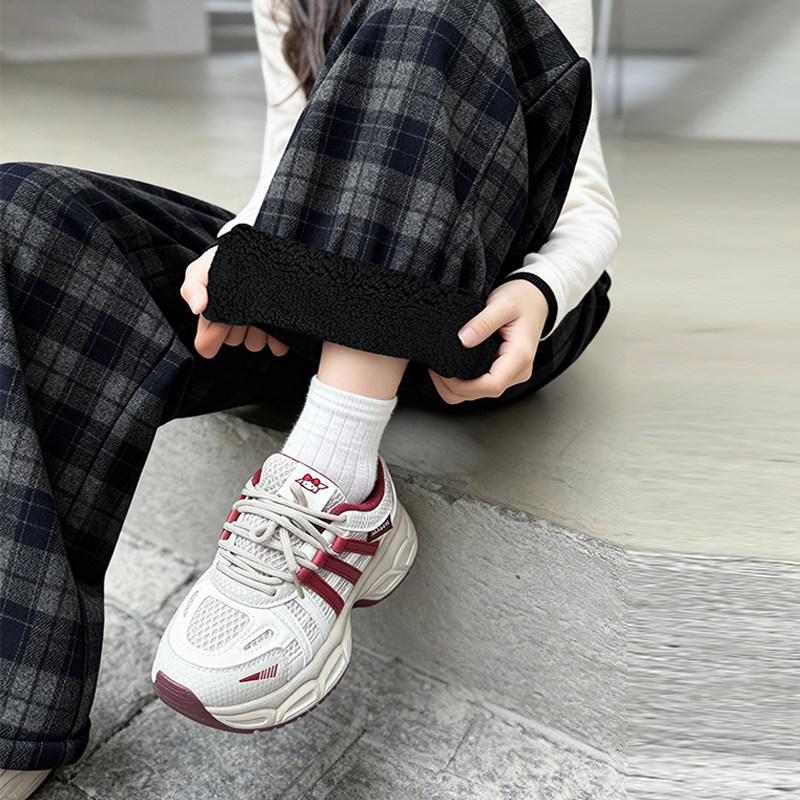 女童加绒裤子2025新款儿童冬季加厚阔腿裤初中生女孩洋气冬装长裤