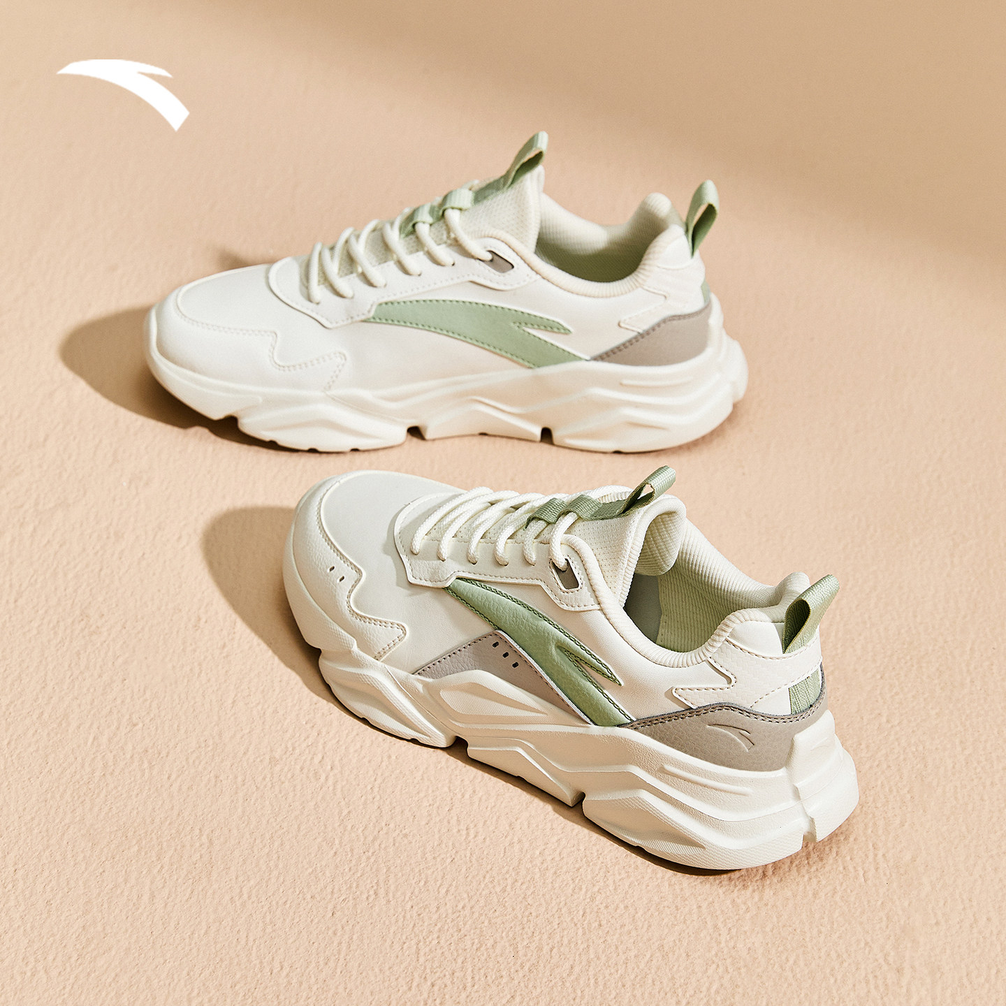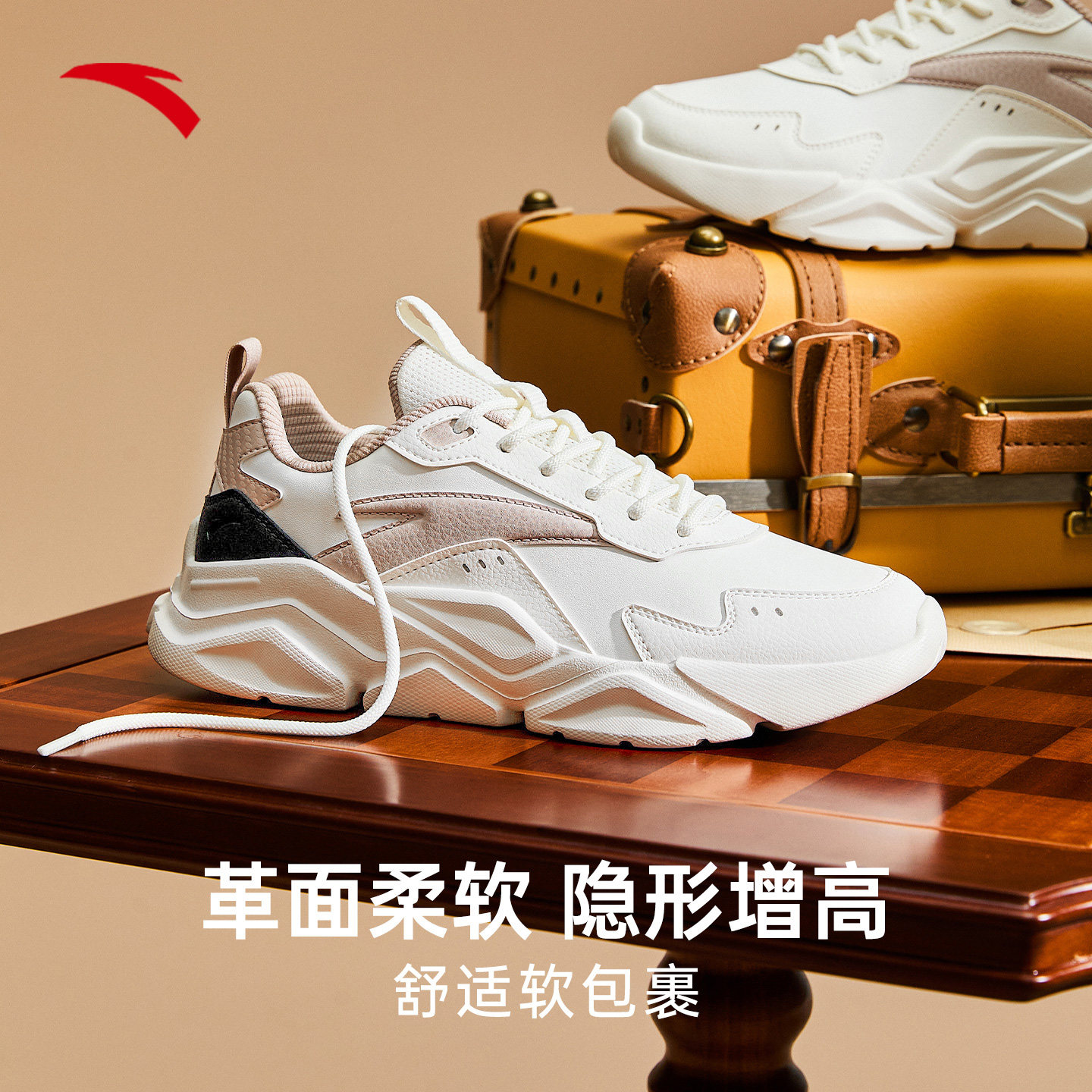 安踏运动鞋女2026新款春季革面跑步鞋增高老爹鞋女款百搭休闲鞋