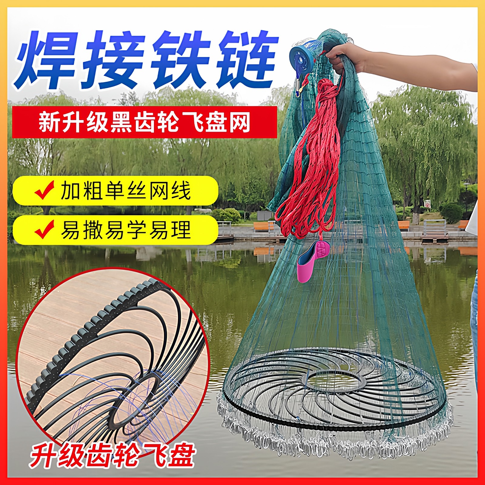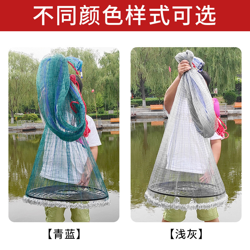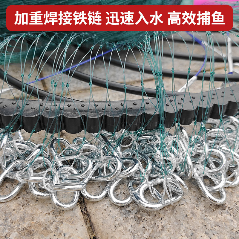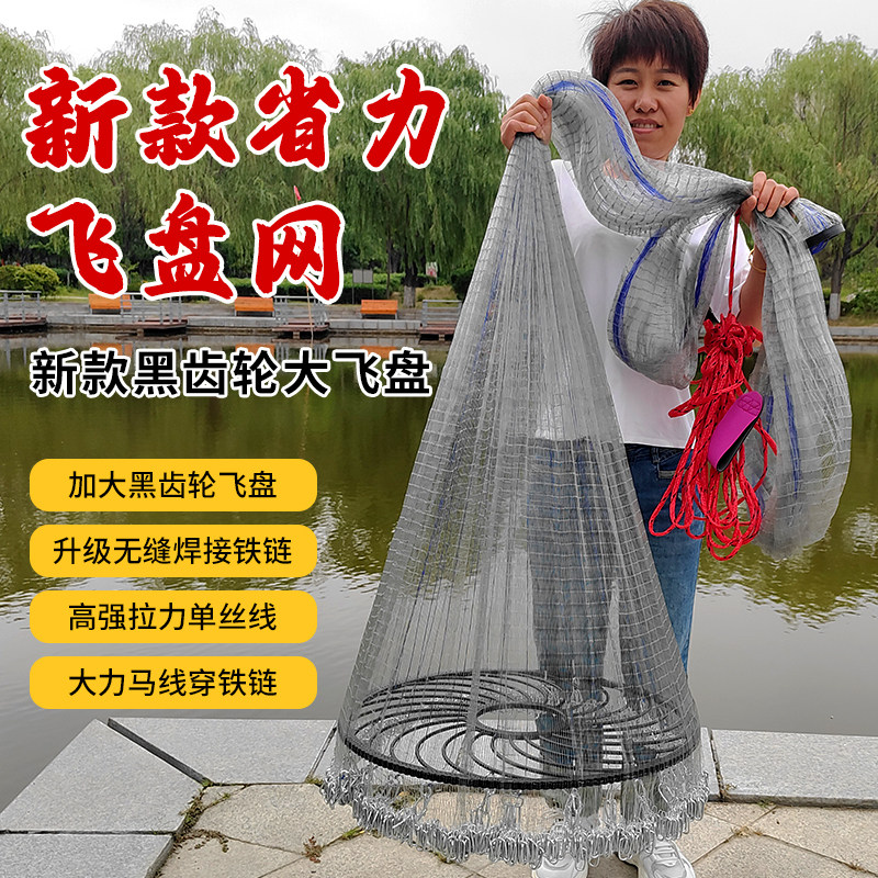 新款齿轮大飞盘渔网撒网手抛网加重开顶轮盘进口鱼线焊接链条旋网