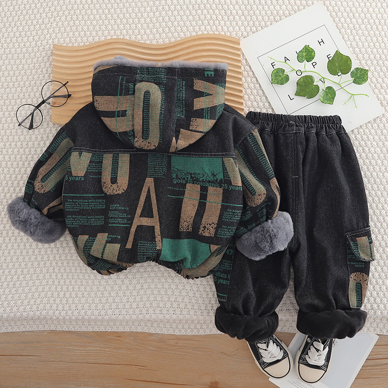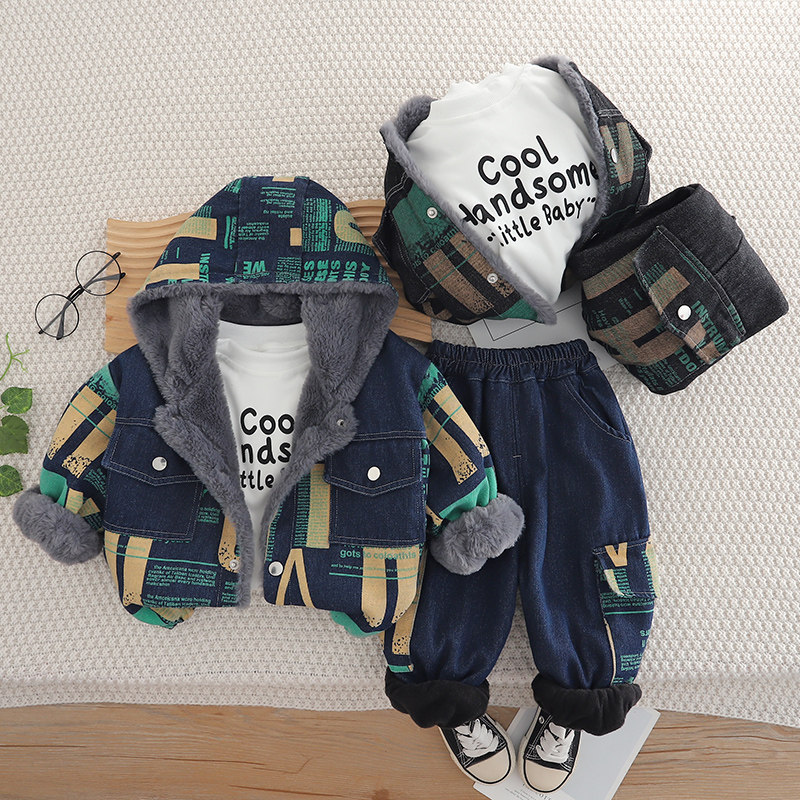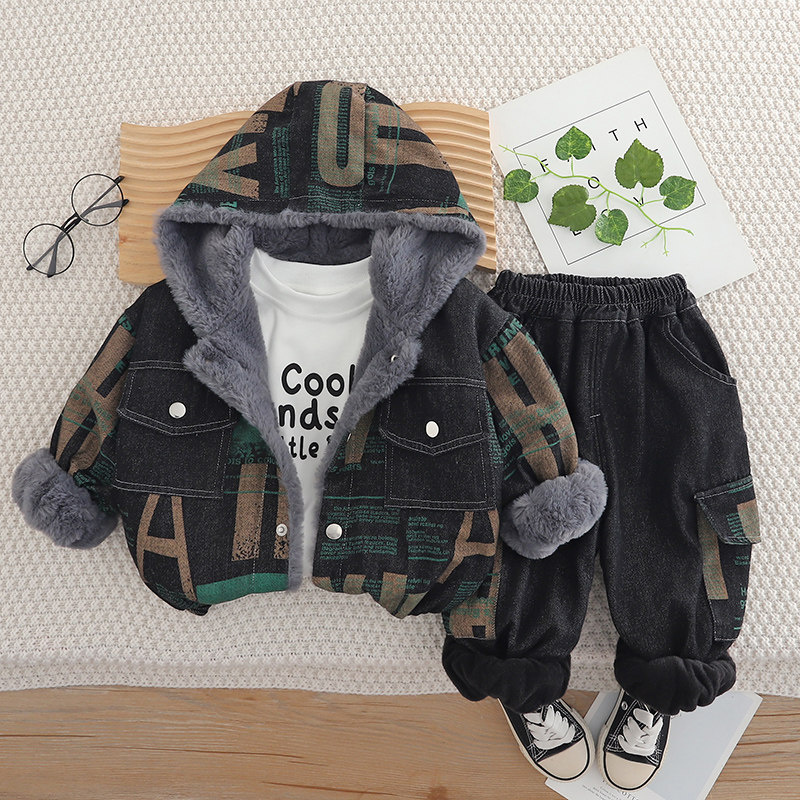 男童冬装套装儿童加绒加厚卫衣男孩保暖外套1一3岁宝宝冬季三件套