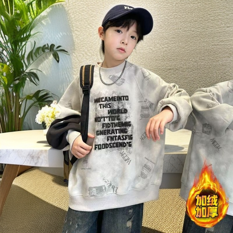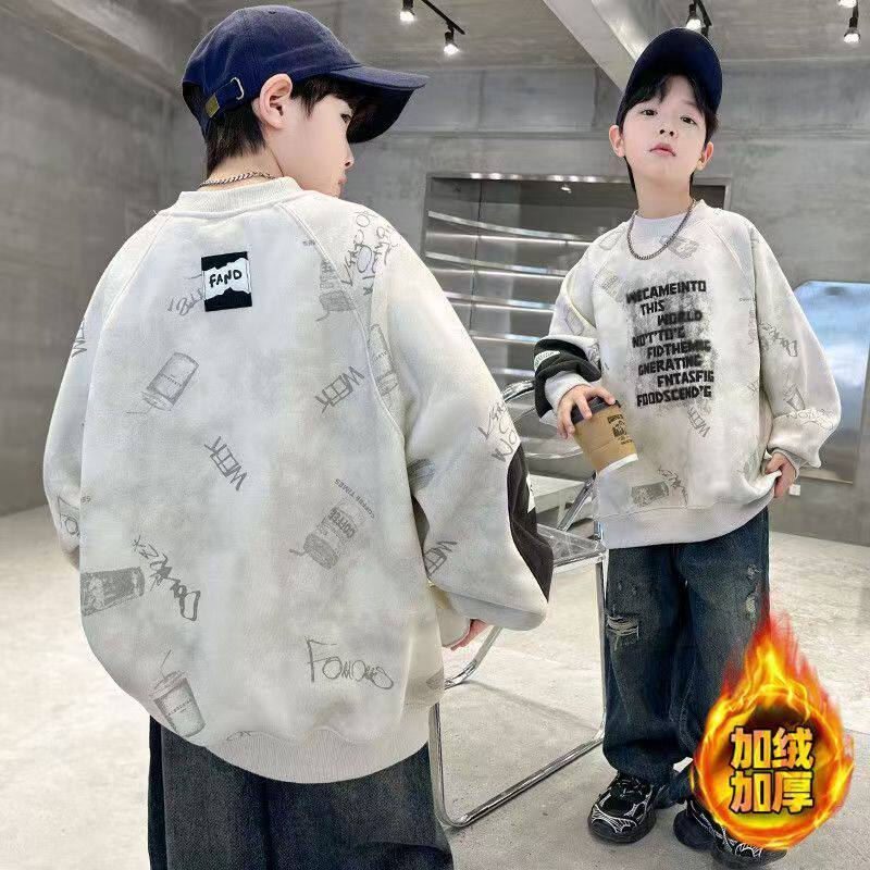 儿童装男童冬装加绒加厚卫衣2026新款秋冬款中大童男孩冬季上衣潮