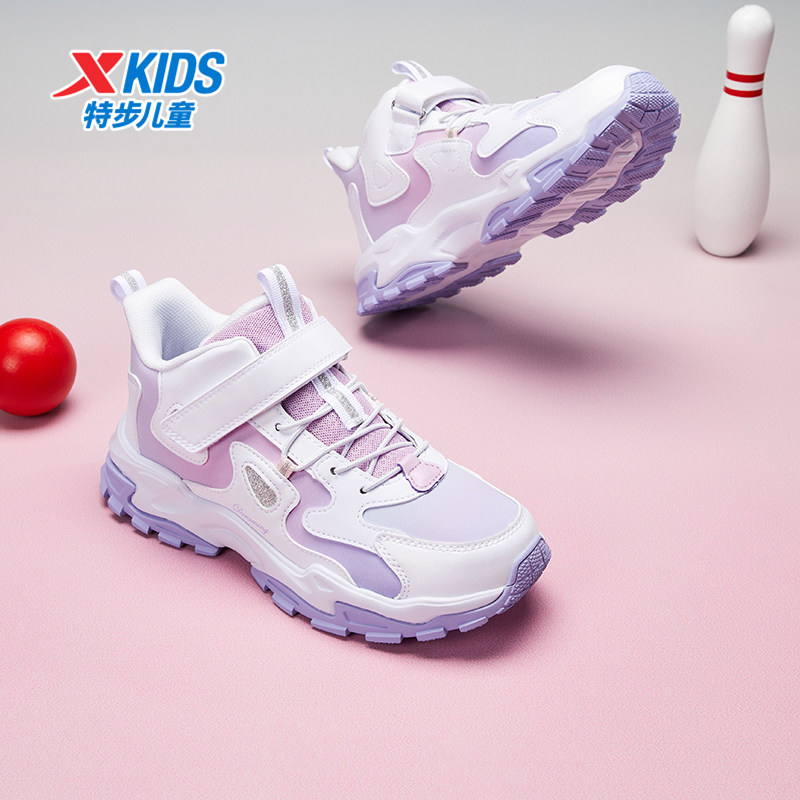 特步儿童鞋冬季皮面加绒女童鞋魔术贴中大童鞋休闲耐磨运动鞋子