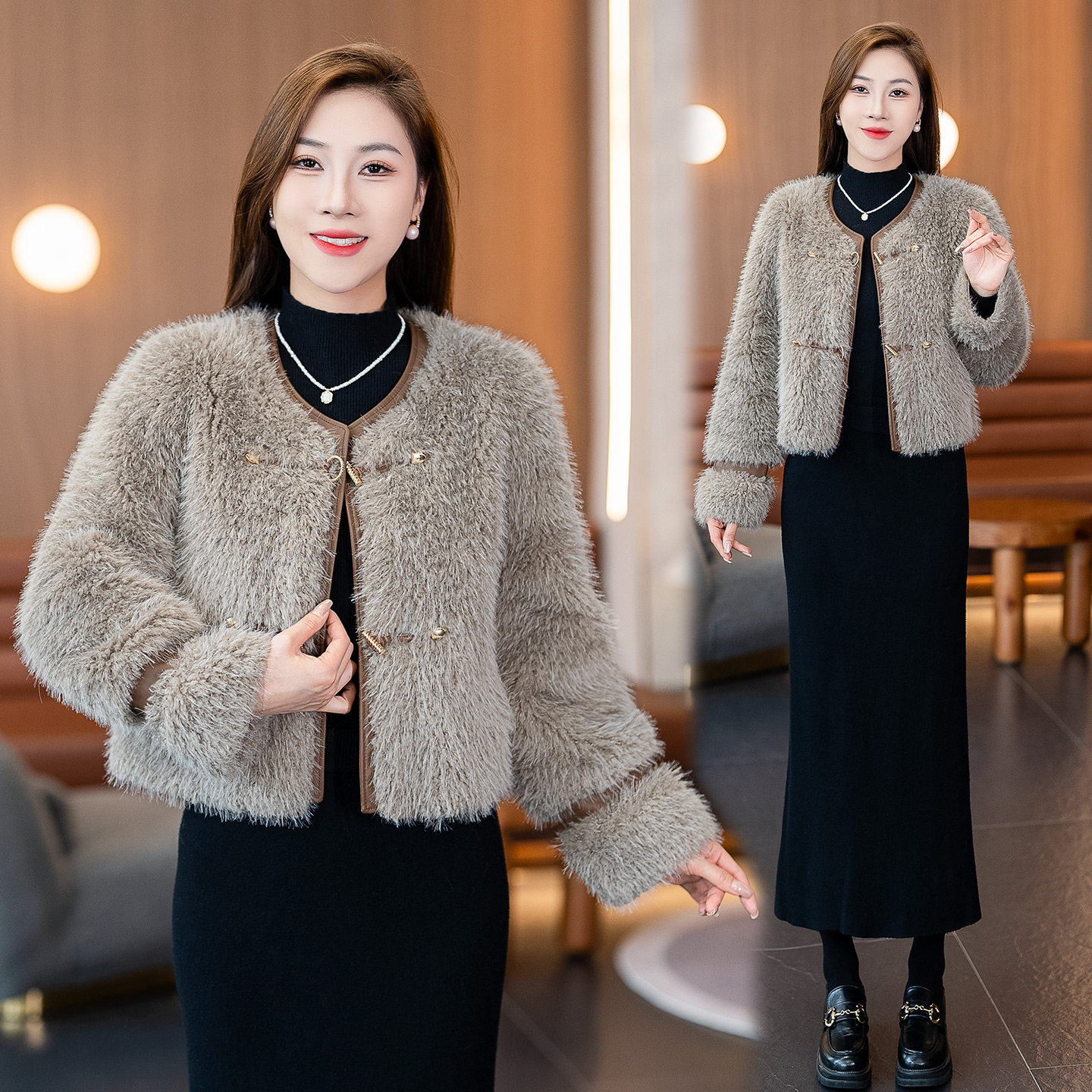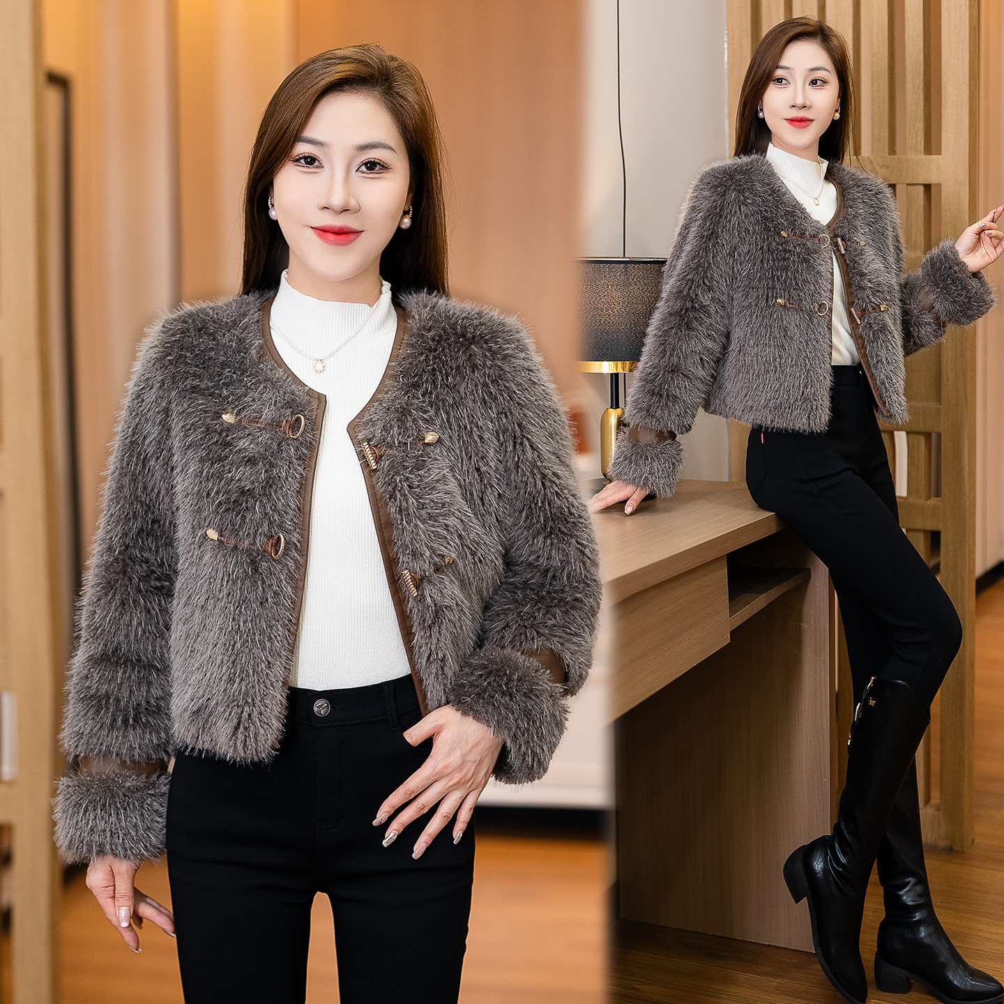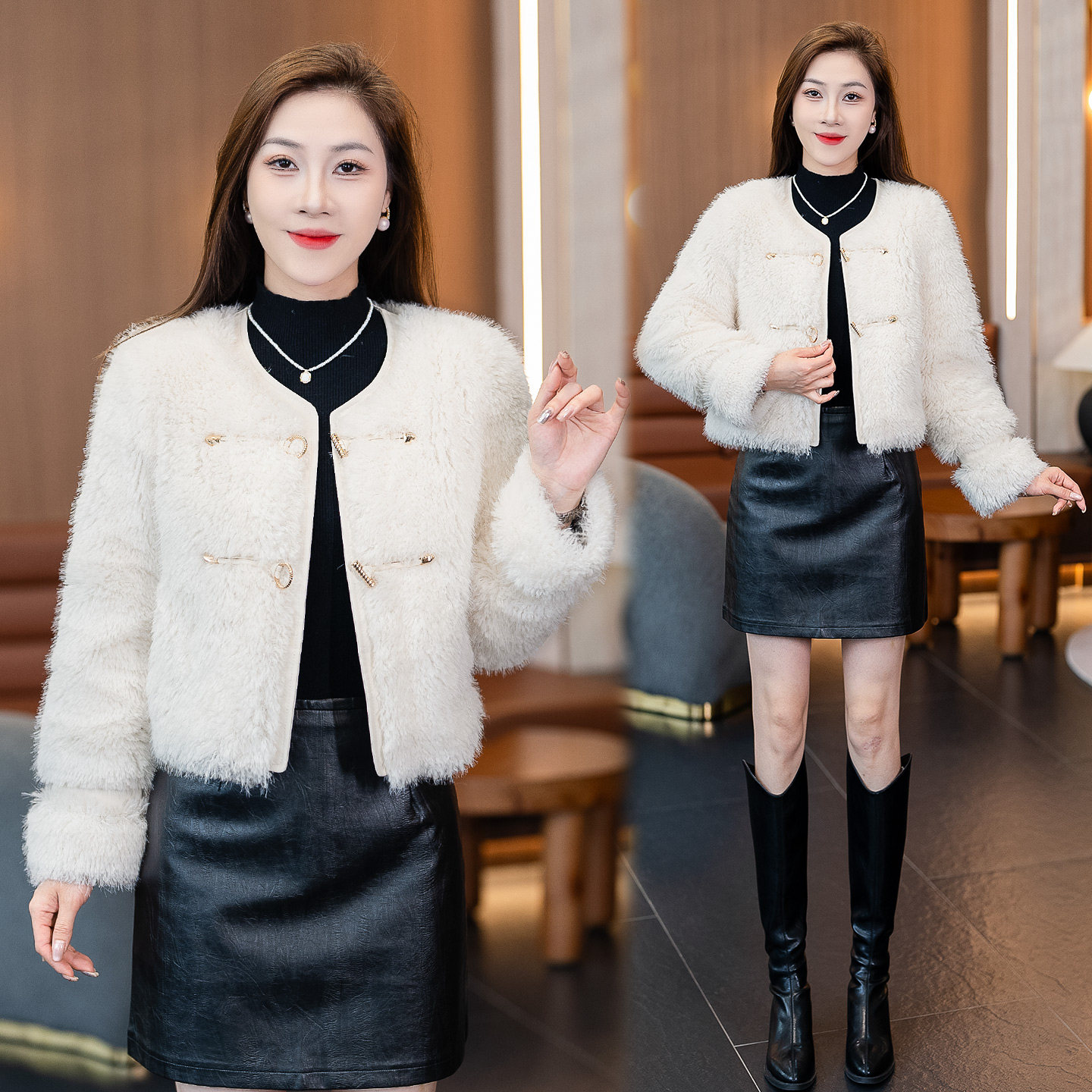 高级感短款毛毛皮草女士冬装新款时髦设计感保暖皮毛一体外套上衣