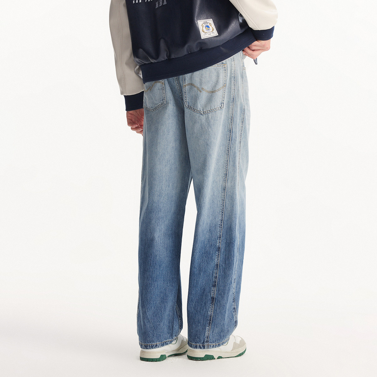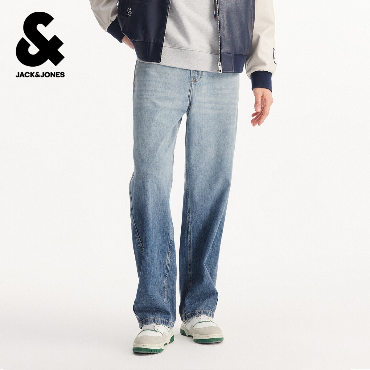 杰克琼斯男装2026春季新款牛仔裤超廓形渐变长裤潮宽松百搭裤子