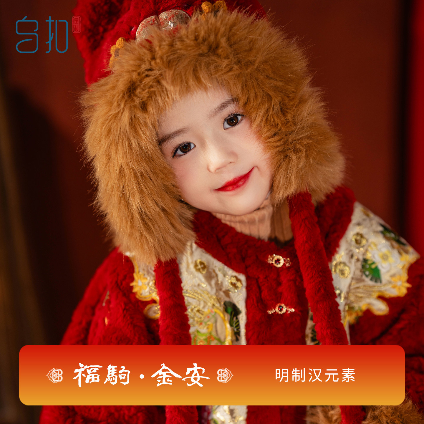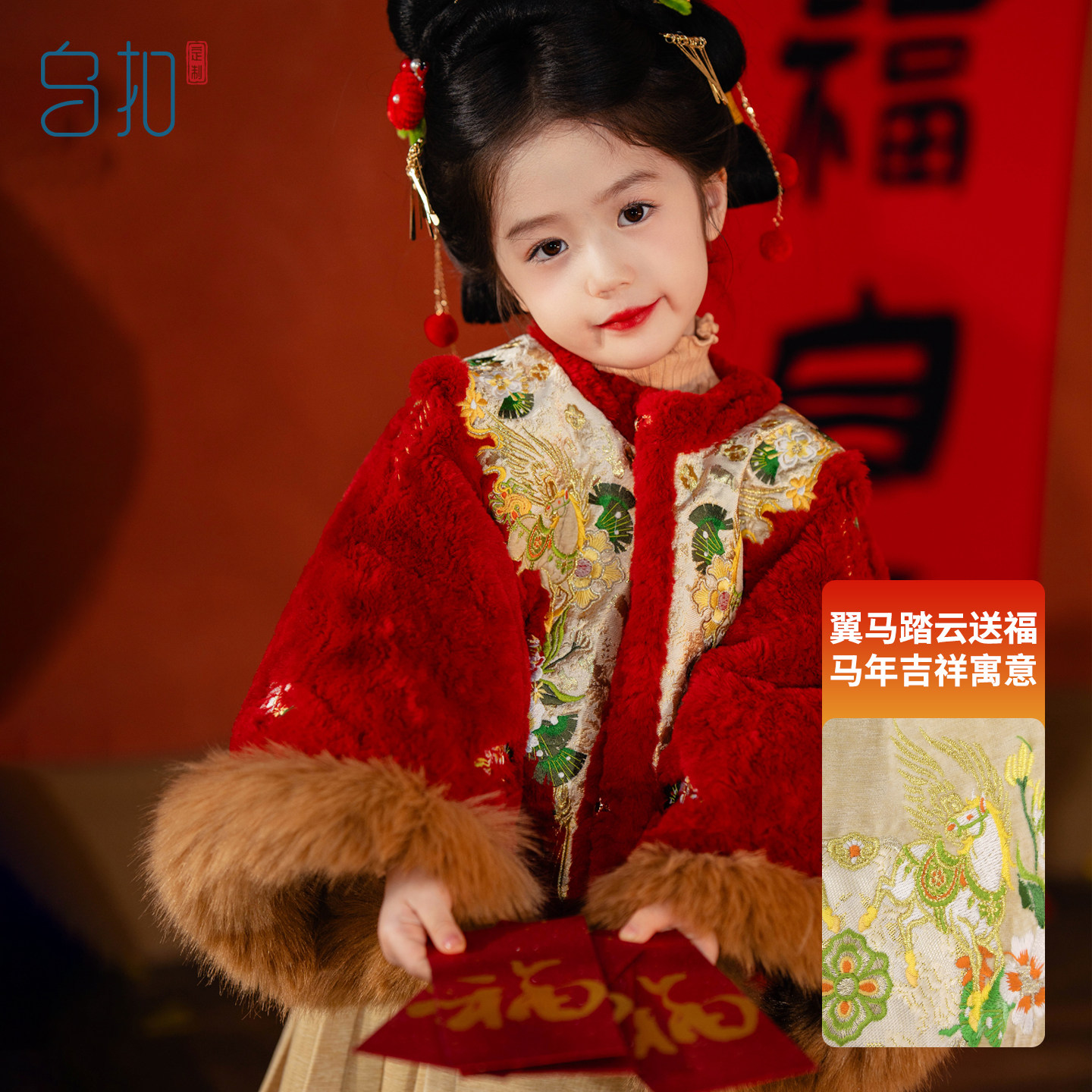 乌扣.福驹.金安 女童汉服冬款拜儿童年服马面裙国风冬季加厚保暖