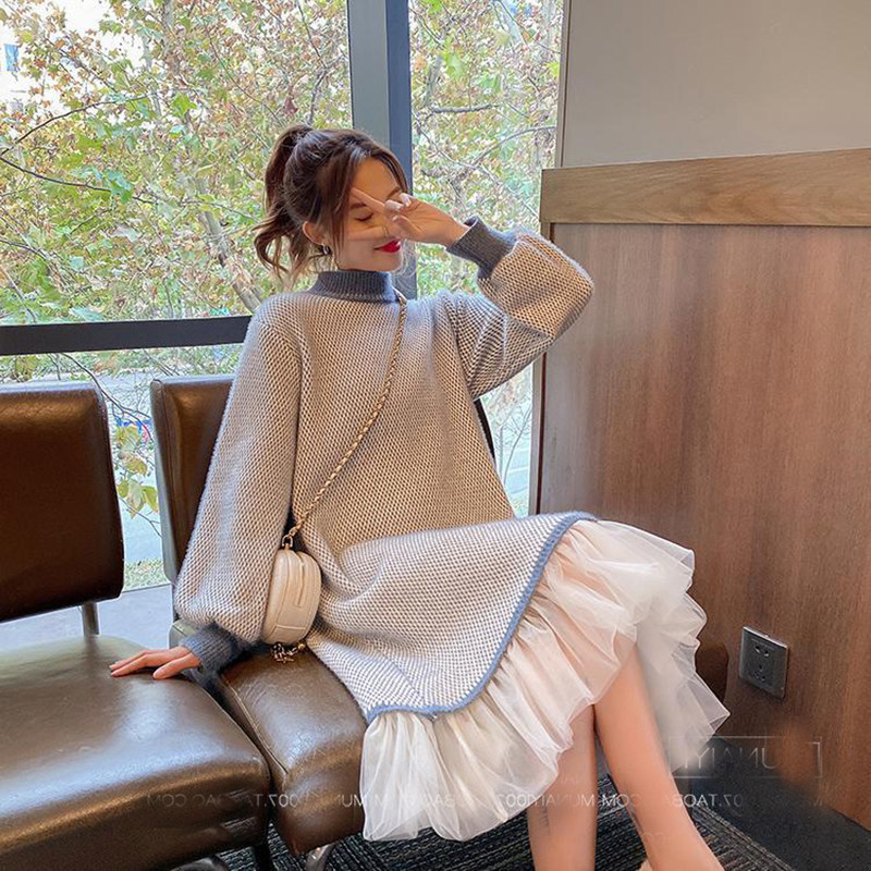 超仙的冬季加厚连衣裙毛衣小个子女生纱裙水貂绒过膝中长保暖内搭