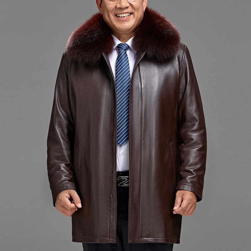 中老年皮衣男真皮爸爸装海宁绵羊皮大衣中长款冬季皮草皮夹克外套