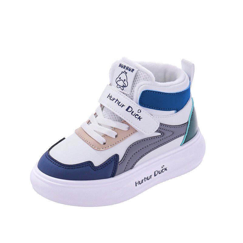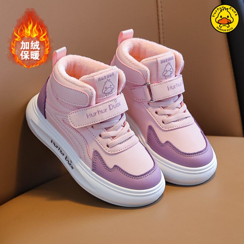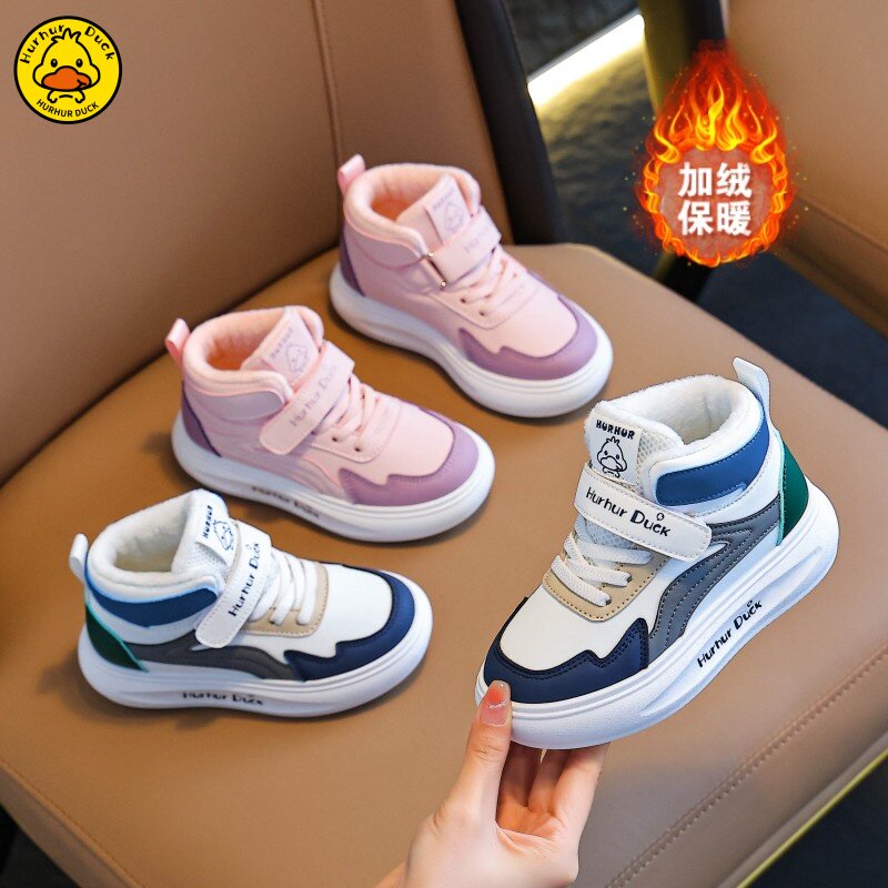 小黄鸭儿童运动鞋冬季新款皮面防水男女童加绒保暖小中童跑步鞋潮
