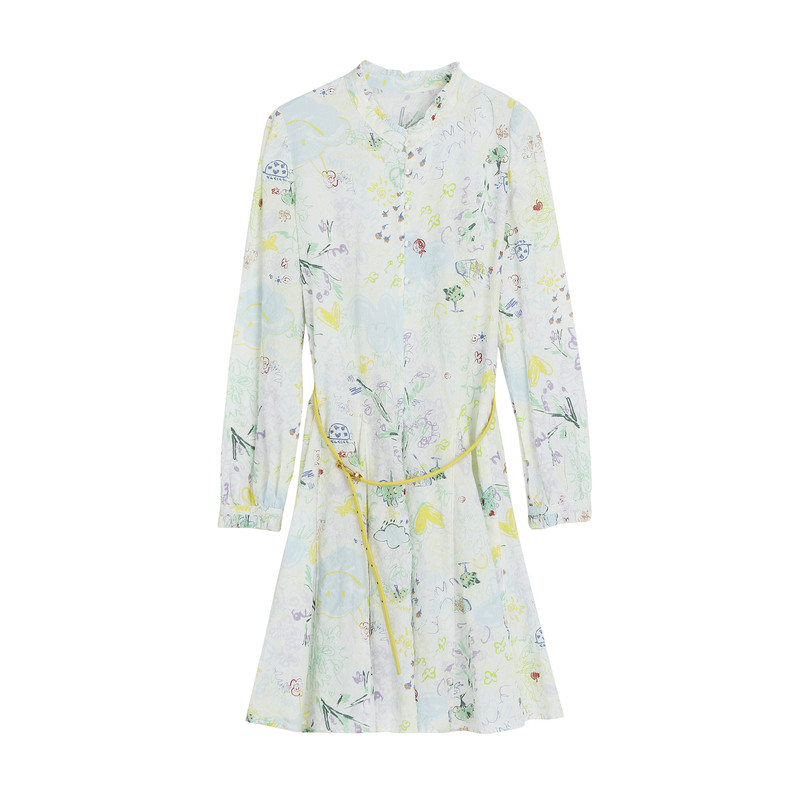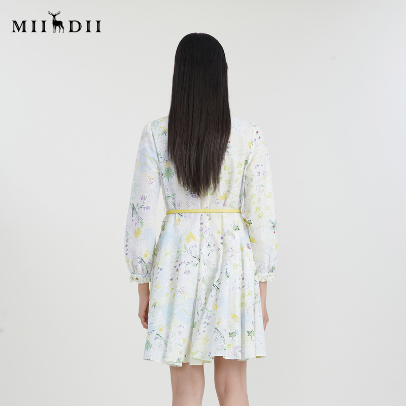 谜底花色连衣裙长袖女春新款小清新立领碎花中长裙231ML0109