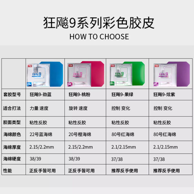 红双喜乒乓球拍胶皮狂飚9彩色胶皮狂飙九反胶高粘性反胶套胶单片